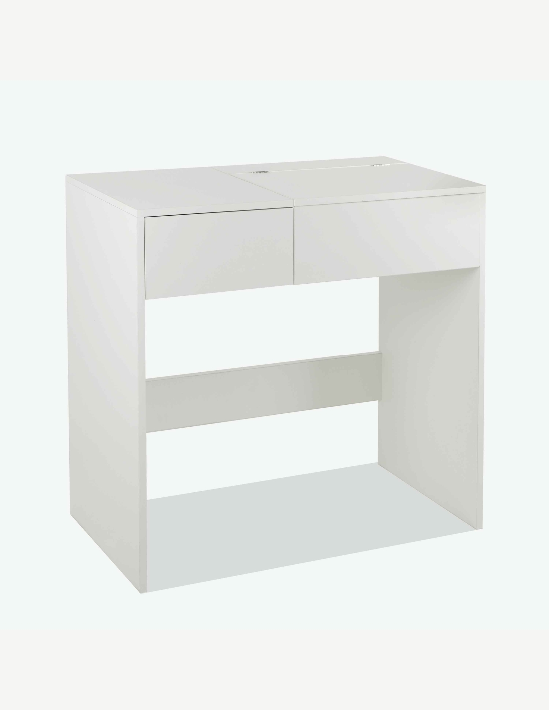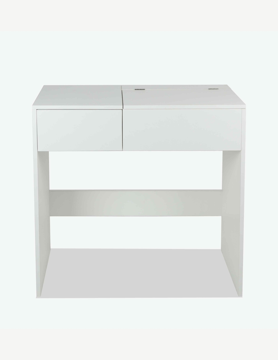 Trendiger Schminktisch in Weiß Dekor mit 1 Schubkasten und 1 Klappe mit integriertem Spiegel. Maße BHT 78x78x37cm