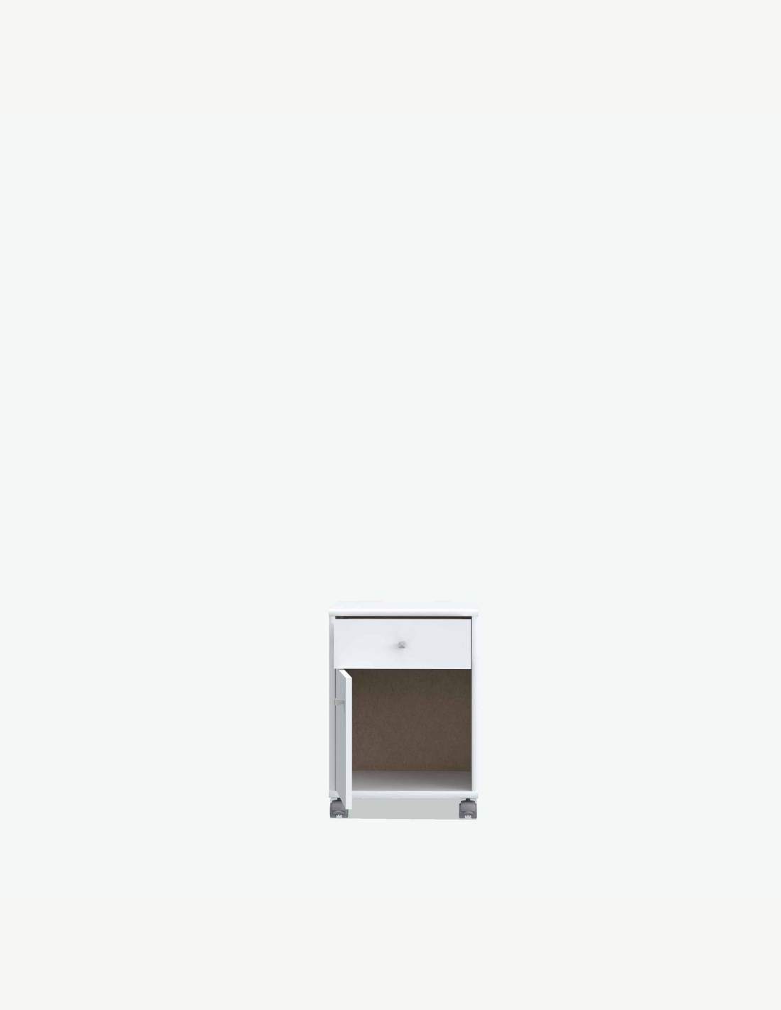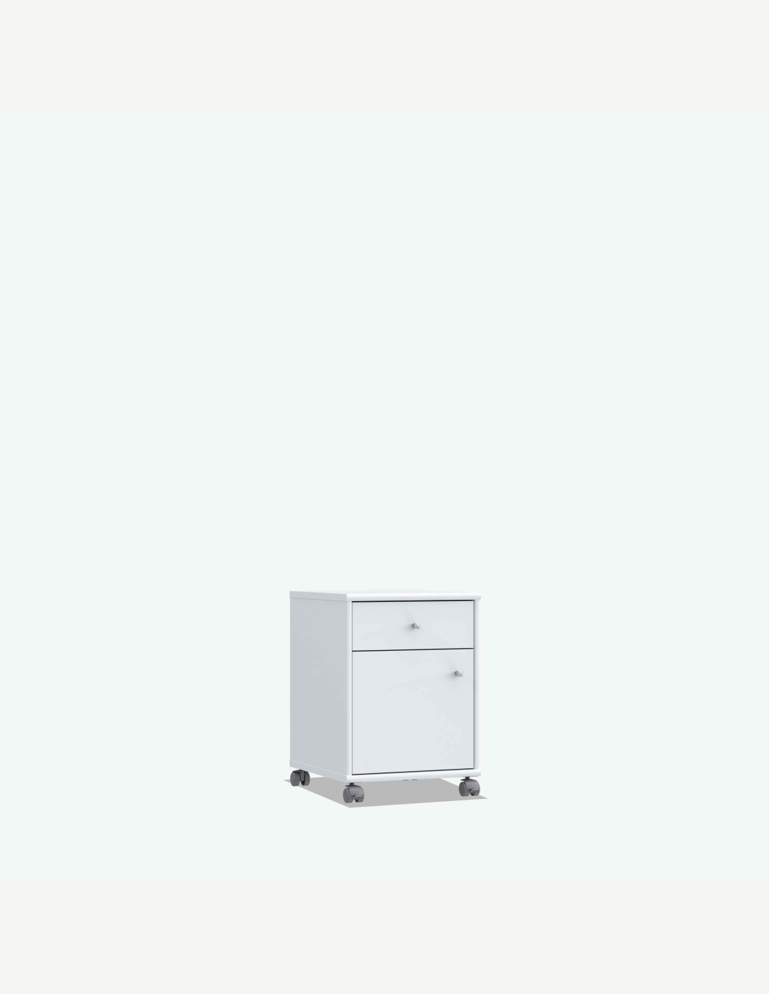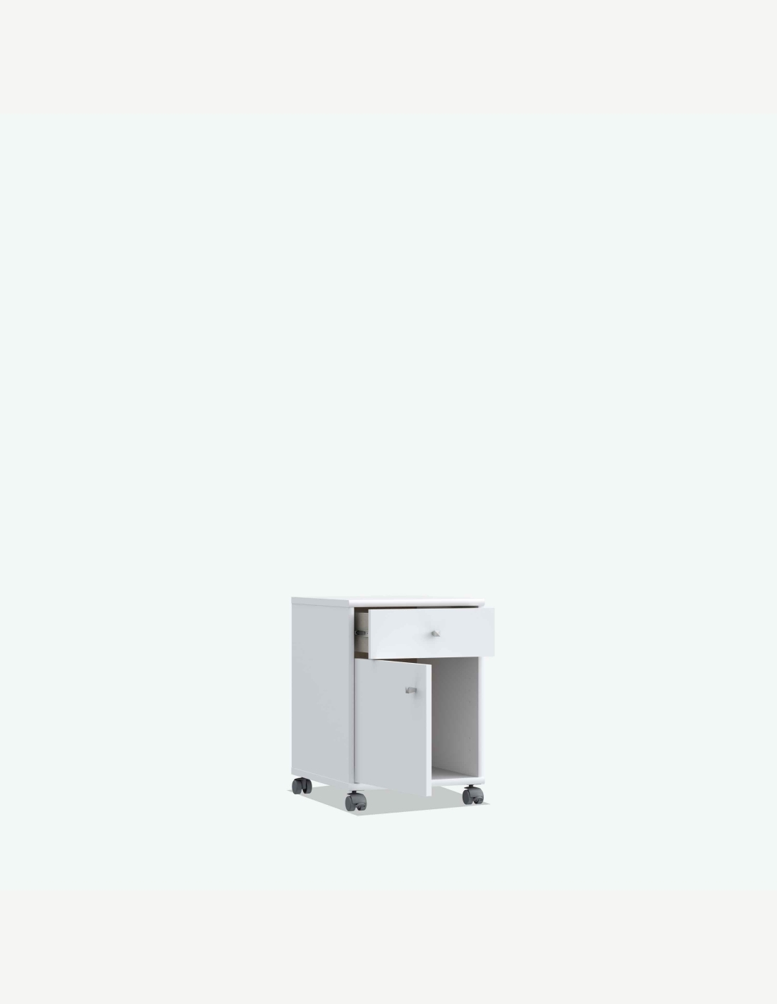 Rollcontainer aus Holzdekor in der Farbe Weiß oder Artisan Oak mit 1 Schubkasten und 1 Tür . Maße: BHT 38,6x54,1x42cm