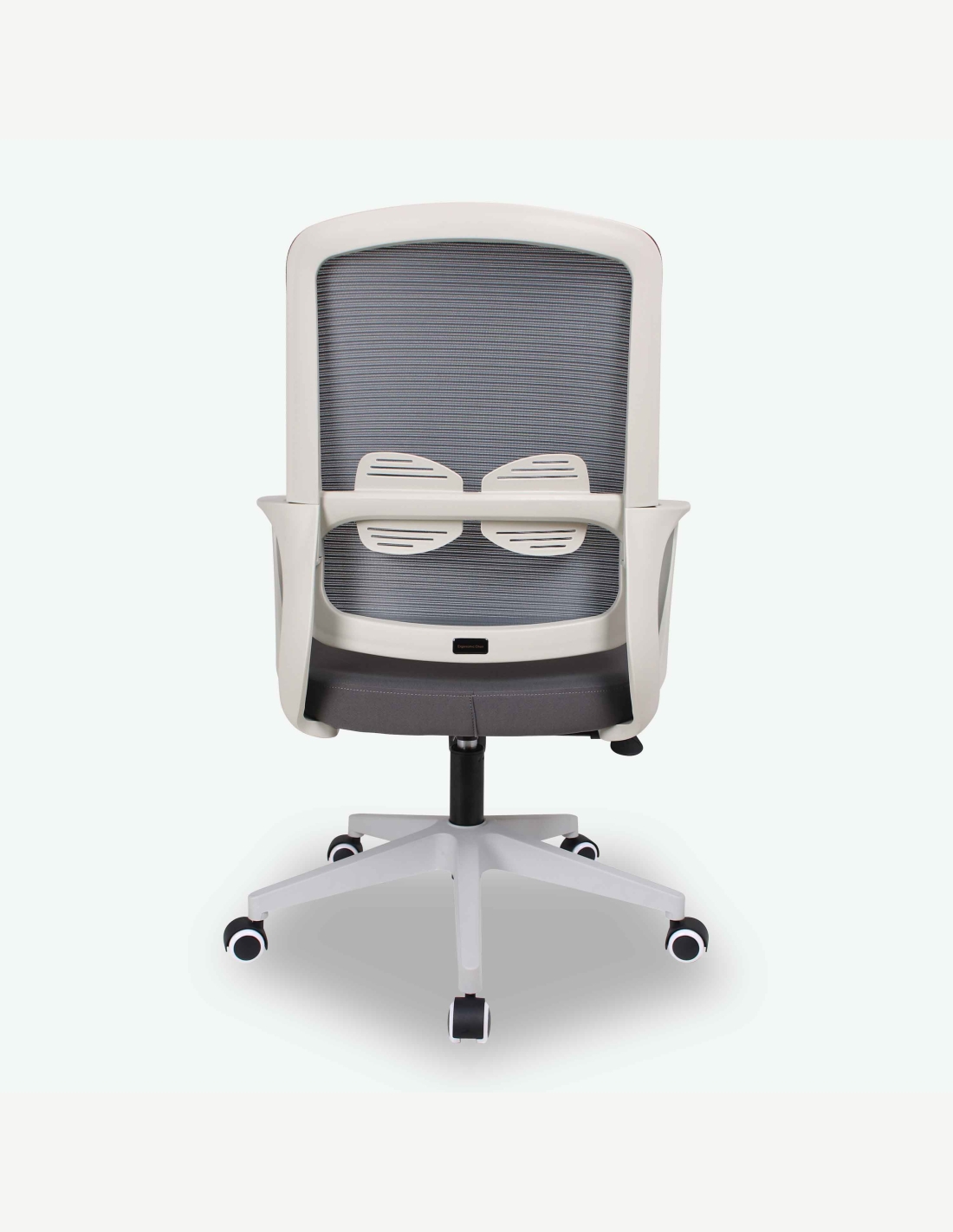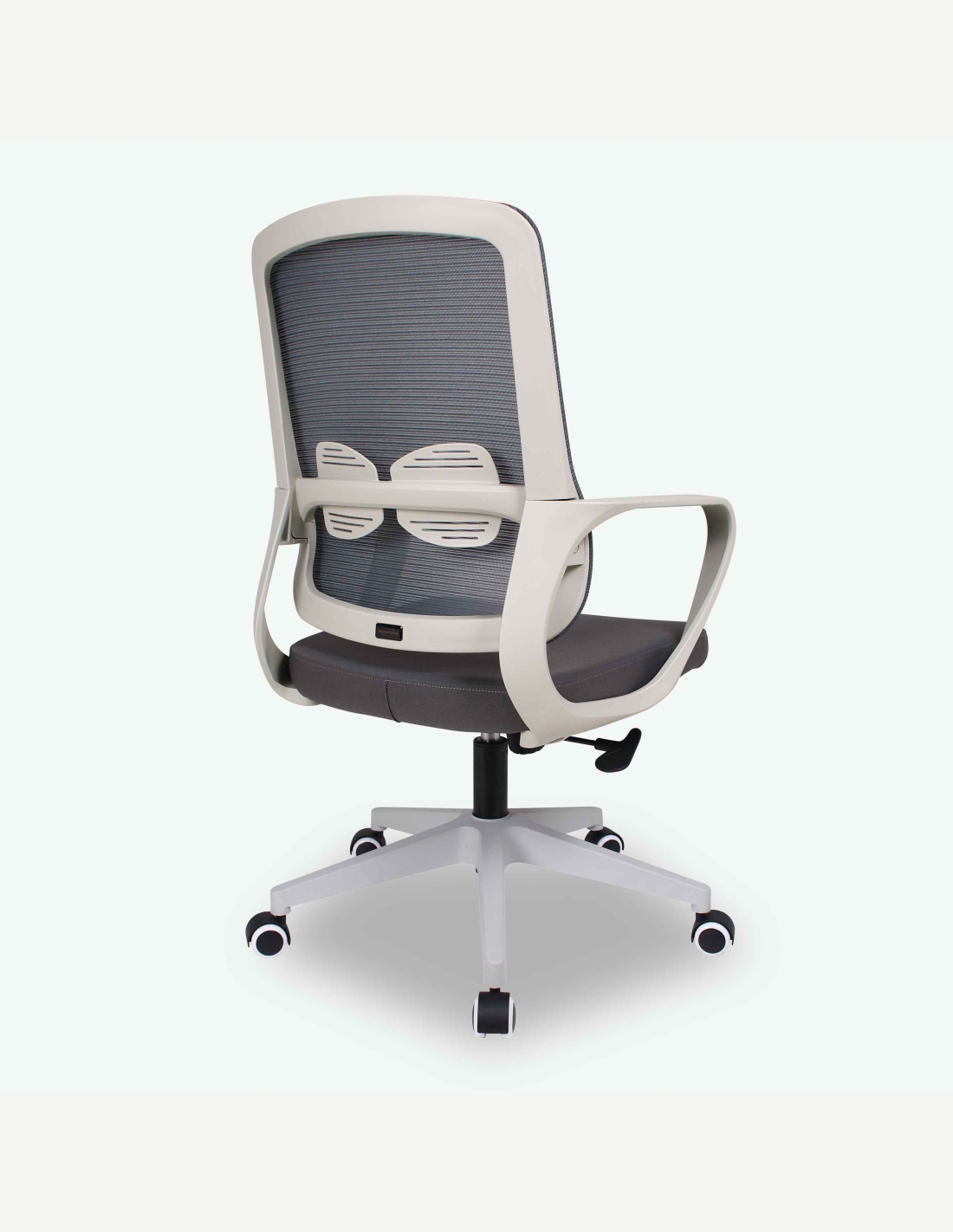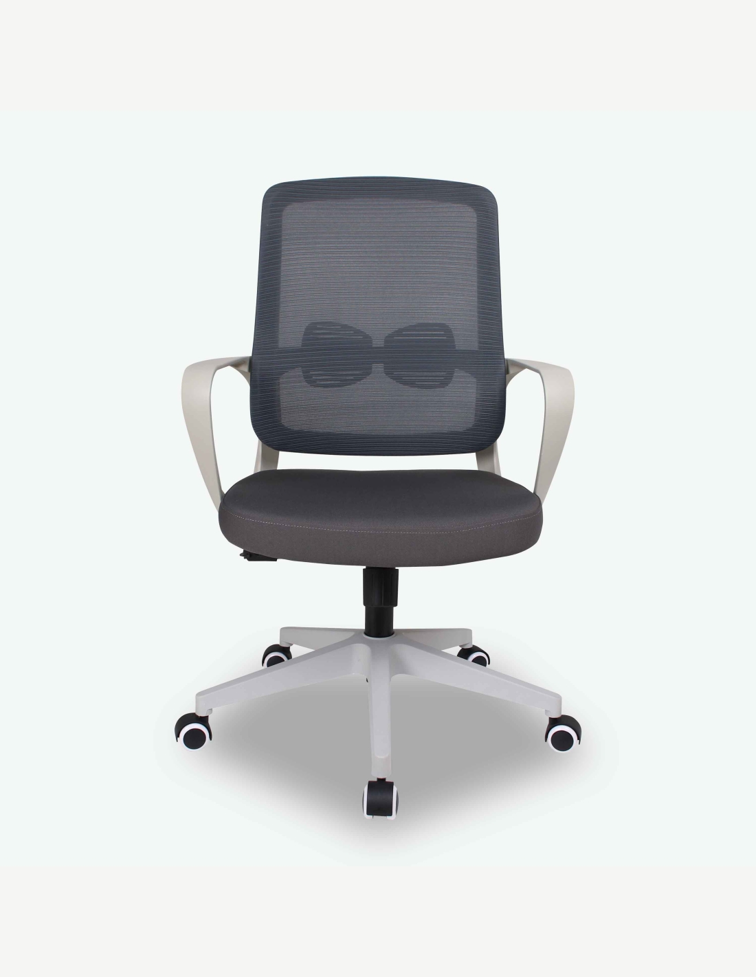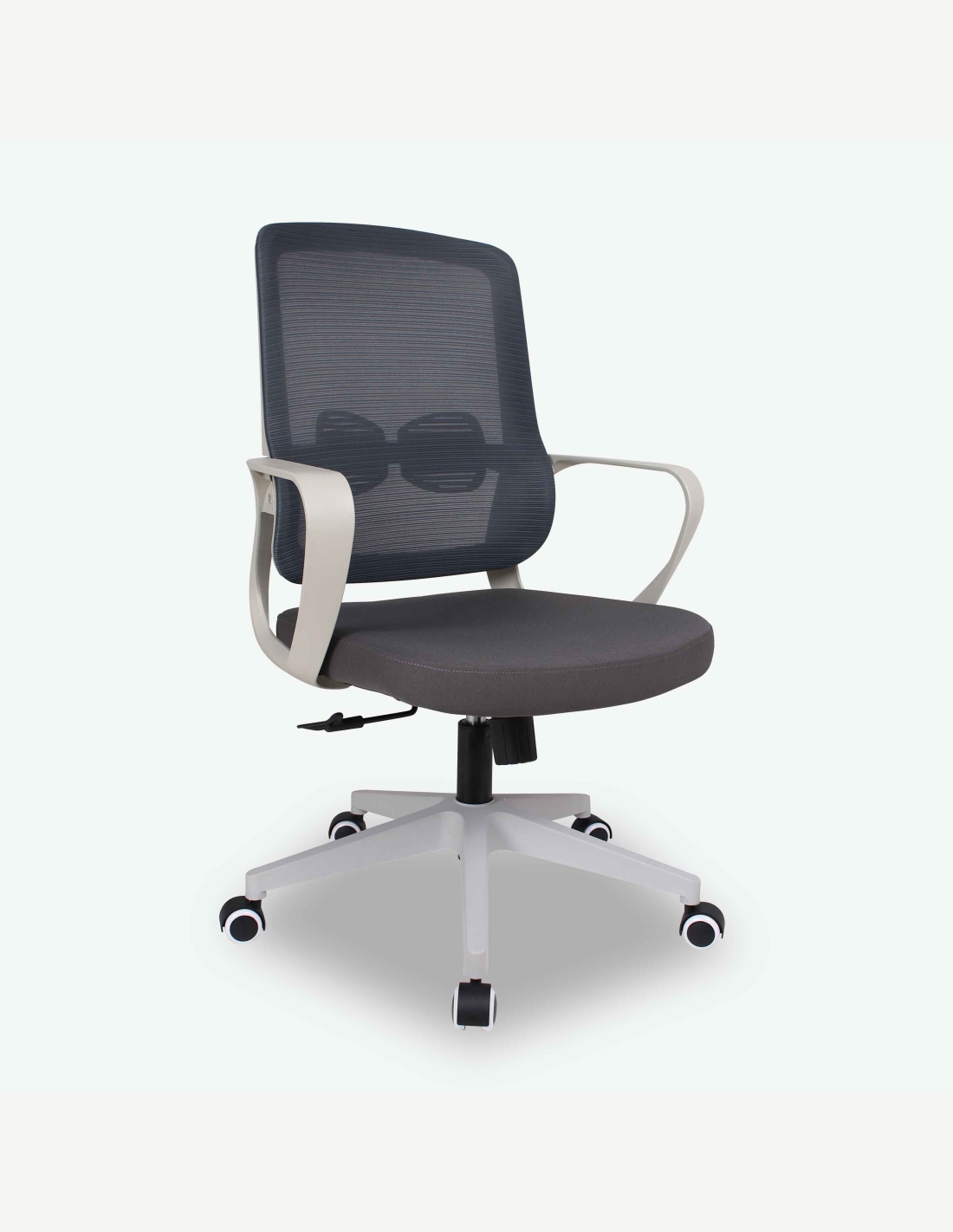 Dieser schlichte und praktische Bürostuhl hat zwei Armlehnen, einen weich gepolsterten Sitz und eine Rückenlehne aus elastischem, atmungsaktivem Netz. Der Stuhl ist höhenverstellbar, um diesem perfekt an den Schreibtisch anzupassen. Unterkonstruktion aus Metall . Dieser Schreibtischstuhl passt in jedes Büro, Arbeitszimmer oder auch Kinder-und Jugendzimmer.