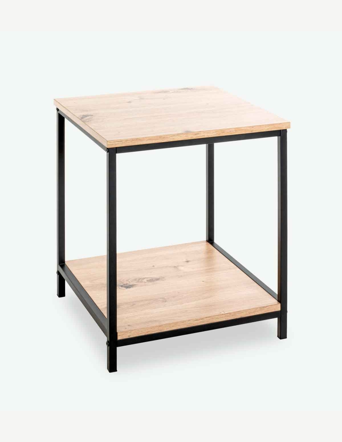 Der kleine Beistelltisch ist vielseitig einsetzbar und bietet sowohl praktischen Nutzen als auch modernes Design. Er ist in zwei Farbvarianten erhältlich: ein helles Eiche-Dekor mit Farbakzenten, das einen warmen, natürlichen Look verleiht, und ein klassisches Schwarz für einen minimalistischen, eleganten Stil. Das stabile Stahlrohrgestell in Schwarz sorgt für Halt und verleiht dem Tisch gleichzeitig einen industriellen Touch. Mit seiner kompakten Größe passt der Tisch perfekt neben ein Sofa, als Nachttisch oder in jedem Raum, in dem zusätzlicher Ablageplatz benötigt wird. Der Tisch ist leicht zu reinigen und eignet sich hervorragend für kleinere Räume oder als stilvolles Accessoire in größeren Einrichtungen.