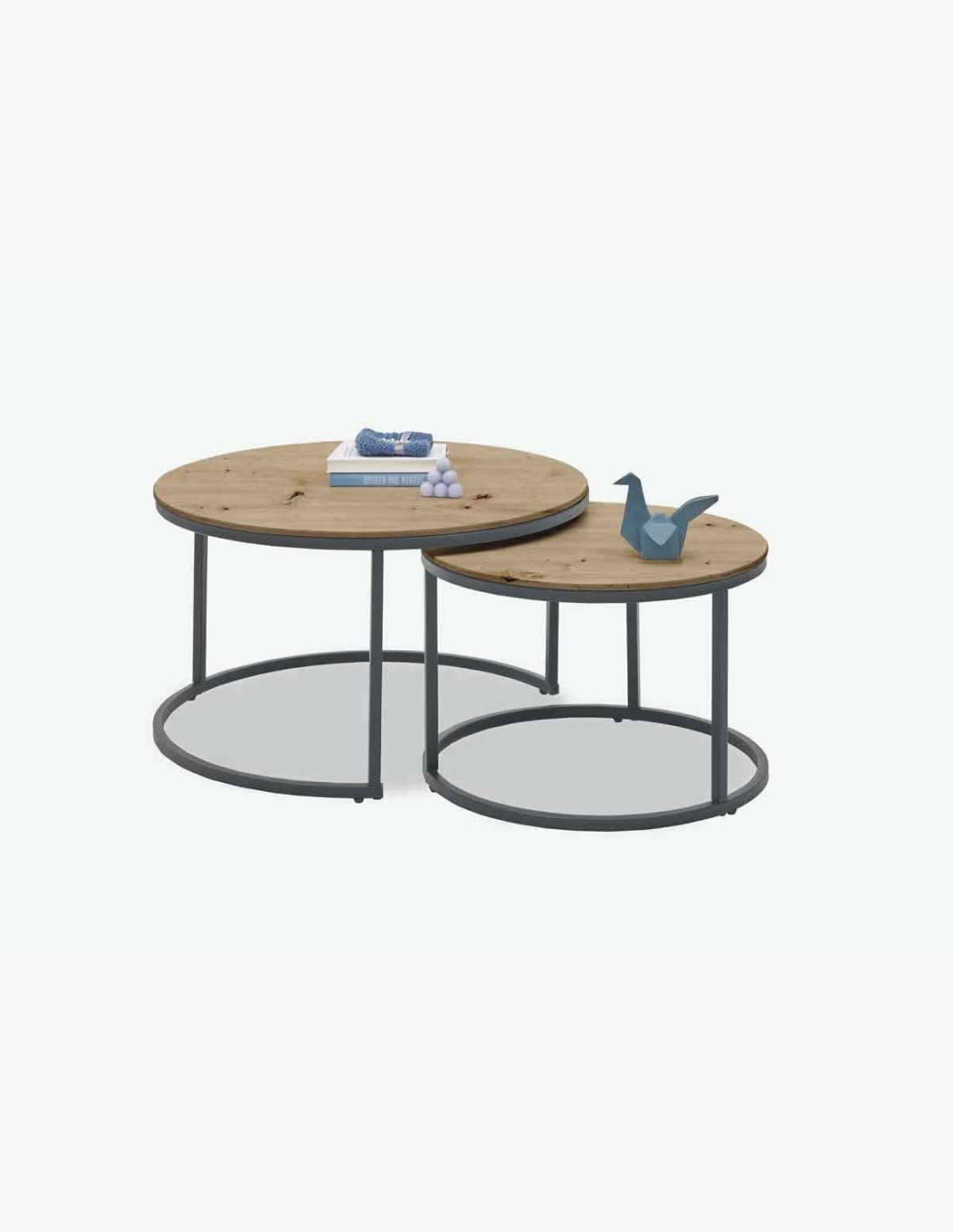 2er Set runder Couchtisch aus Metallgestell und Tischplatte aus Laminat mit PVC-Holzoptik beschichtet. Bietet genügen Stauraum für Zeitungen, Bücher, Deko und vieles mehr! Das robuste Metallgestell verleiht dem Couchtisch einen gemütlichen Look, ideal für dein Wohnzimmer und ist leicht kombinierbar mit anderen Möbeln.