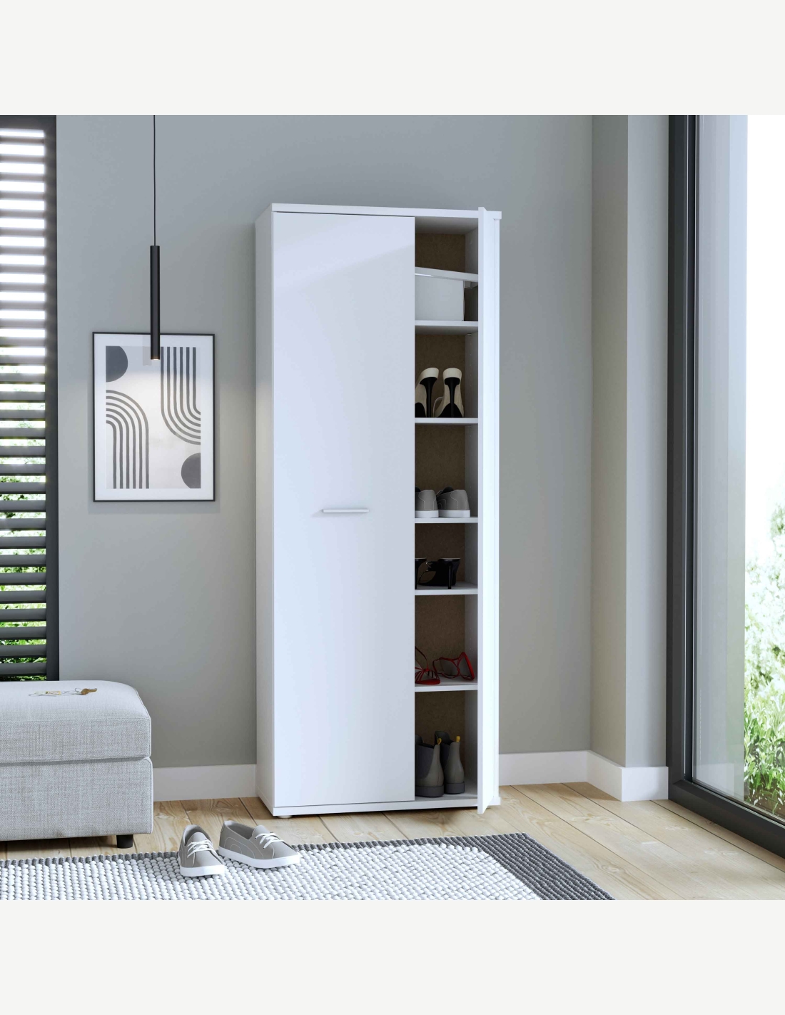 Mehrzweckschrank aus Holzdekor mit 2 Drehtüren und 5 Einlegeböden, verfügbar in verschiedenen Farben. Maße BHT 68,9x179,1x34,8cm