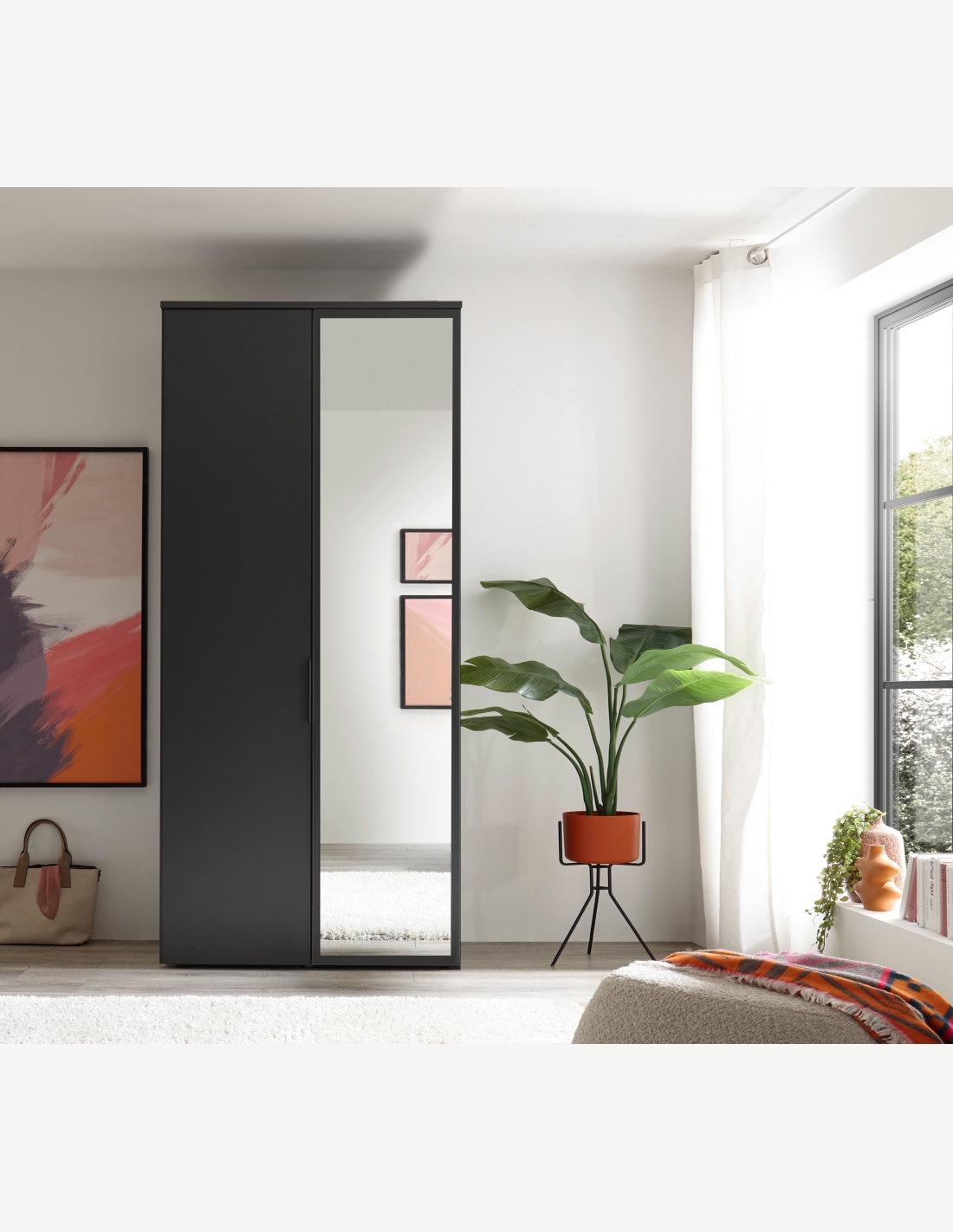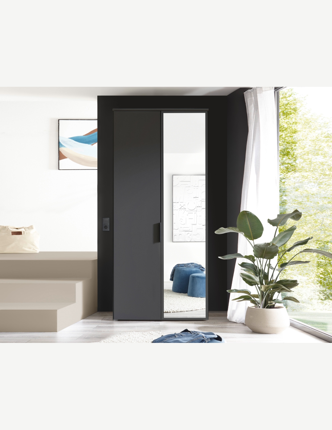 Garderobenschrank mit Spiegel- und Drehtüren, in matt...