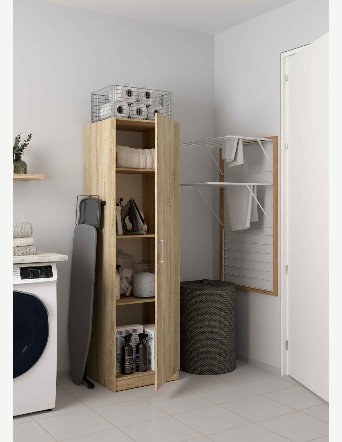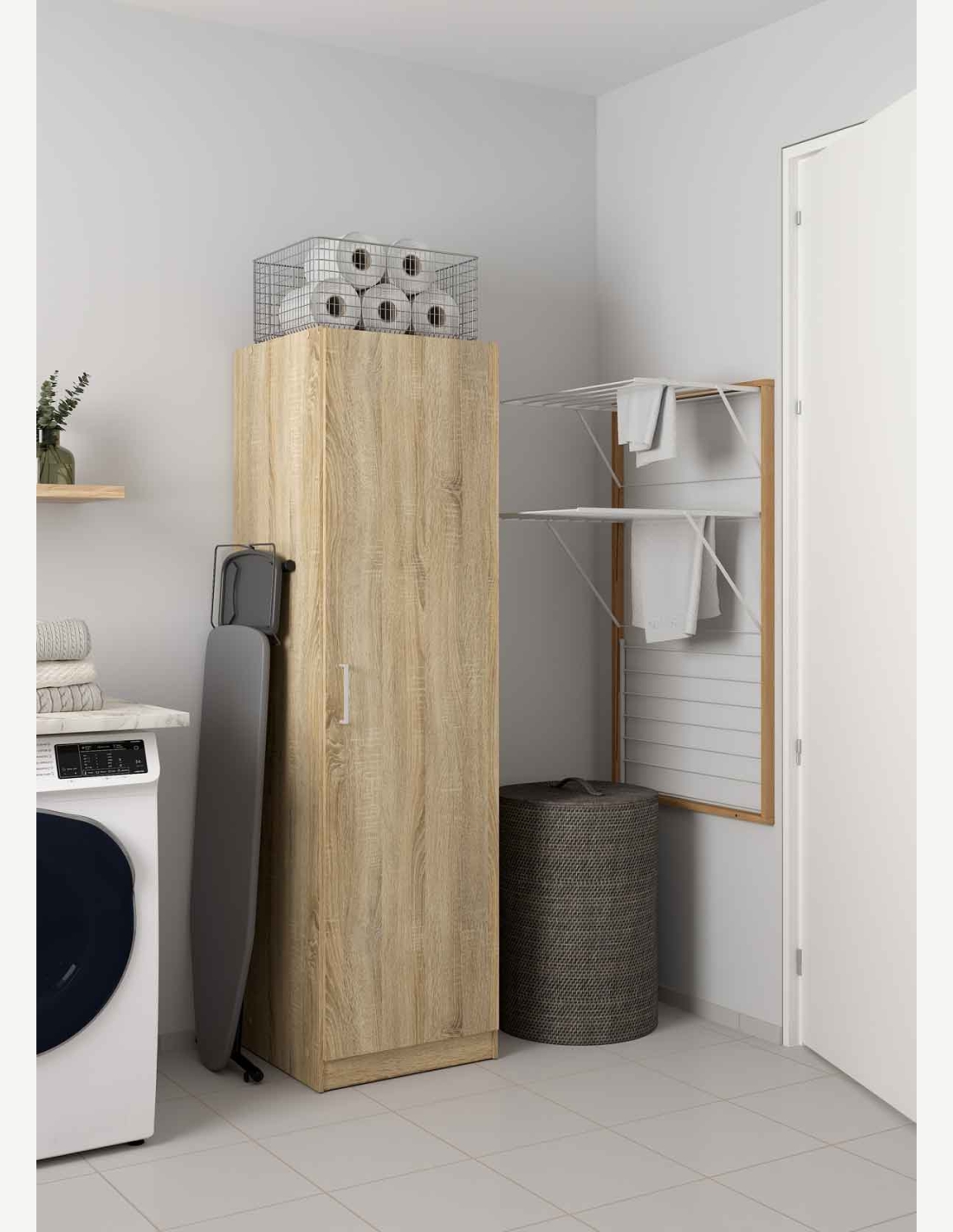 Mehrzweckschrank aus Holzdekor mit 1 Drehtür und 3 Einlegeböden, verfügbar in der Farbe Eiche Sonoma. Maße BHT ca. 48,6x175,4x49,5 cm