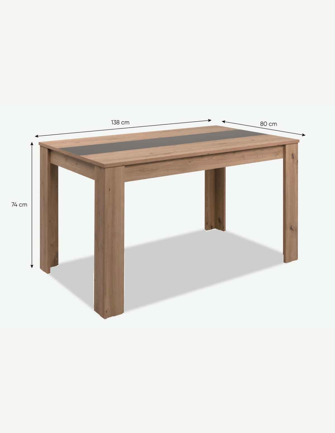 Moderner Esszimmertisch in Holzdekor in der Farbe Eiche Dekor, Abs. Anthrazit, max. Belastbarkeit ca. 60 kg. Maße: BHT 138x74x80 cm