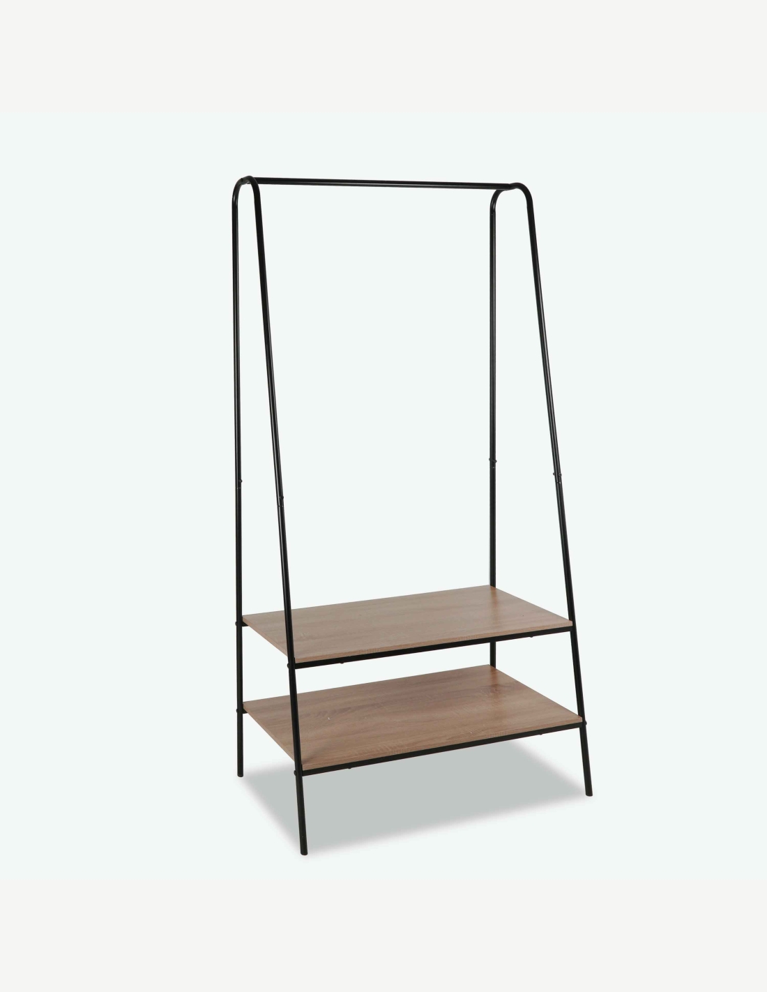 Garderobe aus Metall Schwarz und Holzdekor mit 2 Ablagen Jackenständer. Maße BHT 97x170x45cm