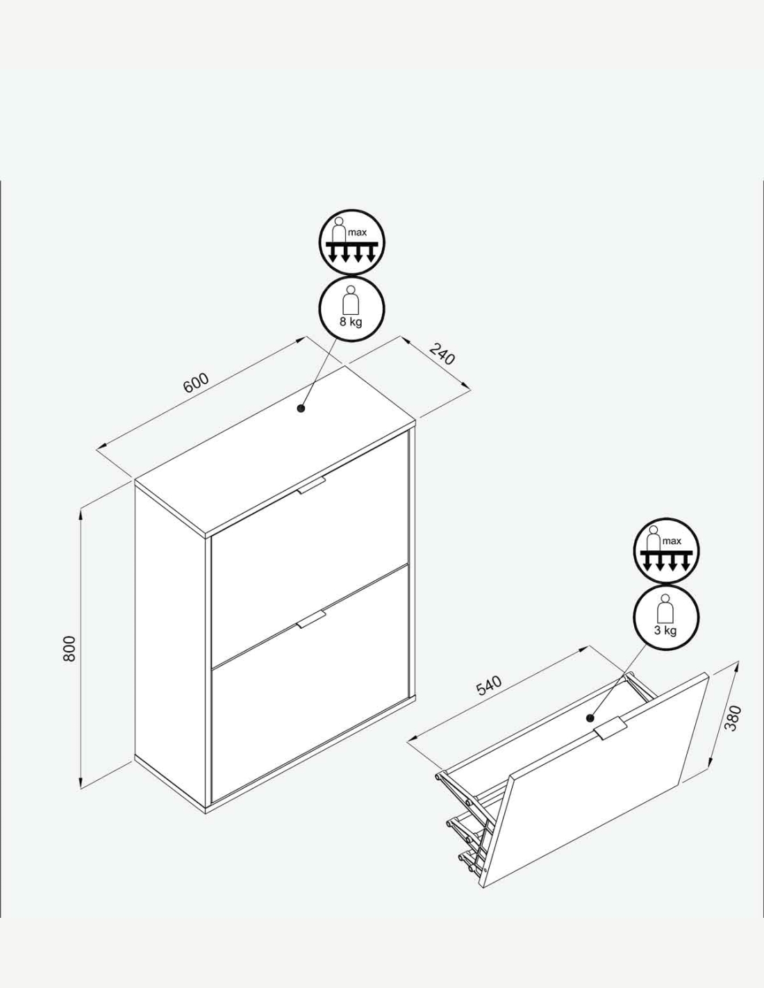 Mehrzweckschrank mit 2 Drehtüren und 3 Einlegeböden aus...