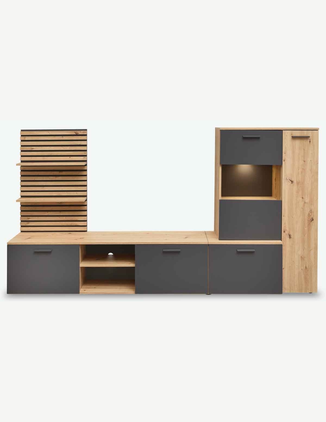 Wohnwand mit integrierter LED Beleuchtung, aus Holzdekor...