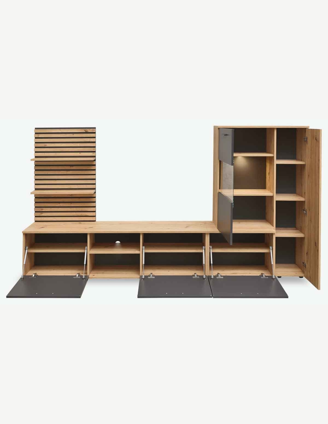 Wohnwand in Holzdekor in der Farbe Eiche Artisan und...