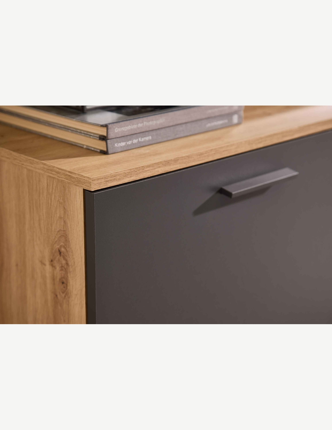 Wohnwand in Holzdekor in der Farbe Grey oak / black wood,...