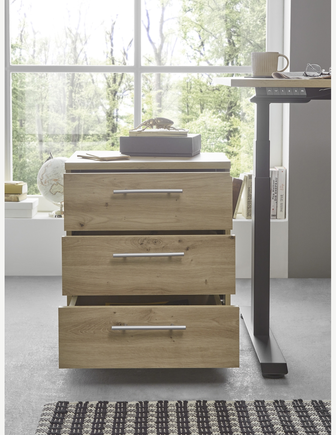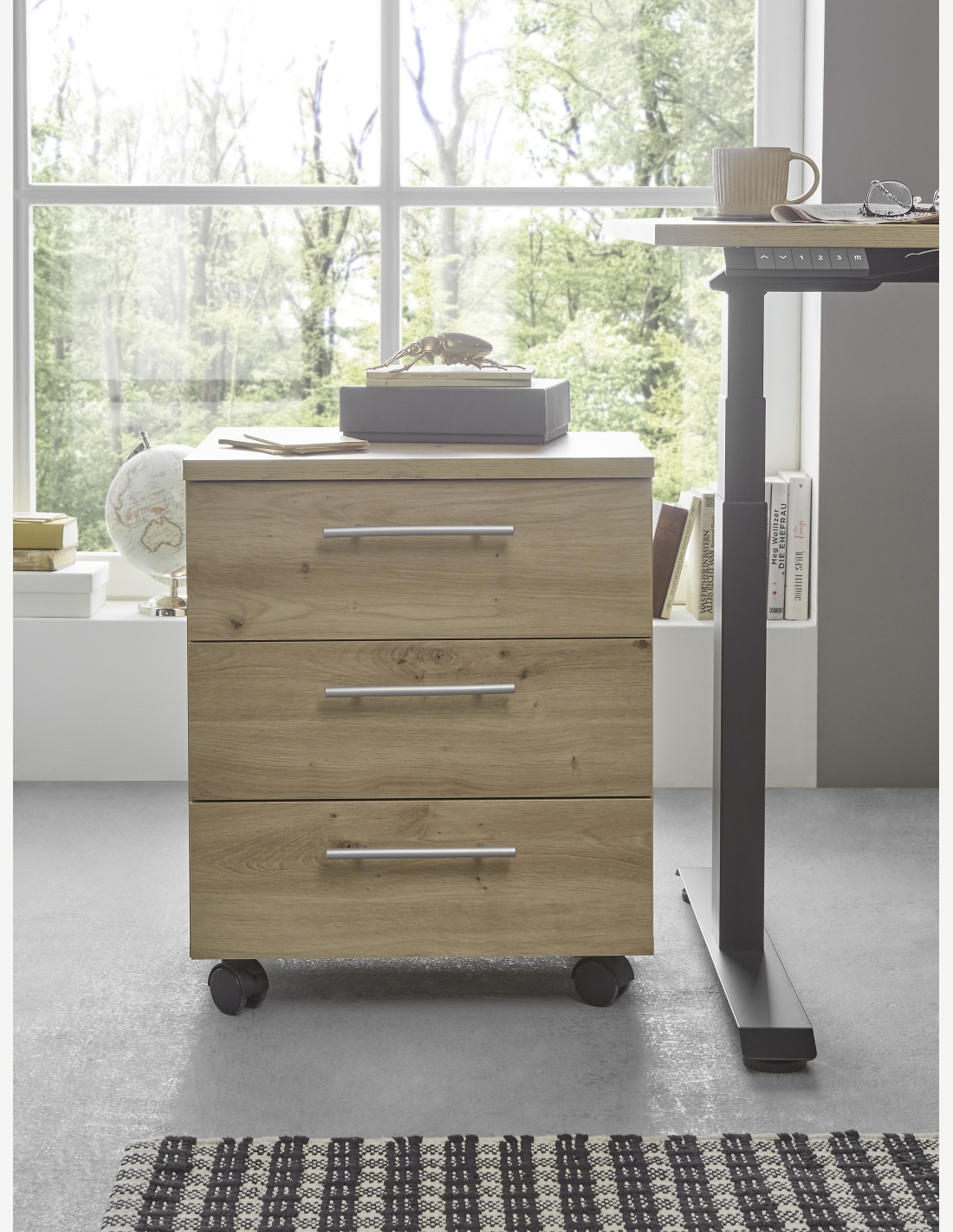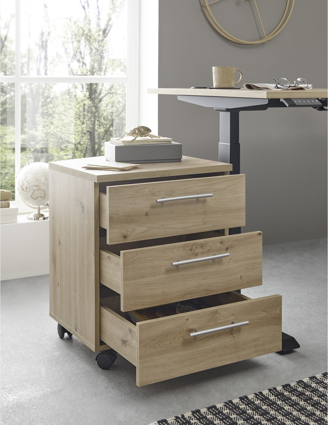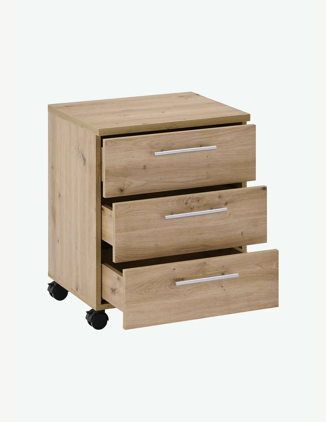 Cassettiera a rotelle in legno laminato con 3 casssetti, disponibile in 4 colorazioni diverse. Dimensioni LAP ca. 40x56x39 cm