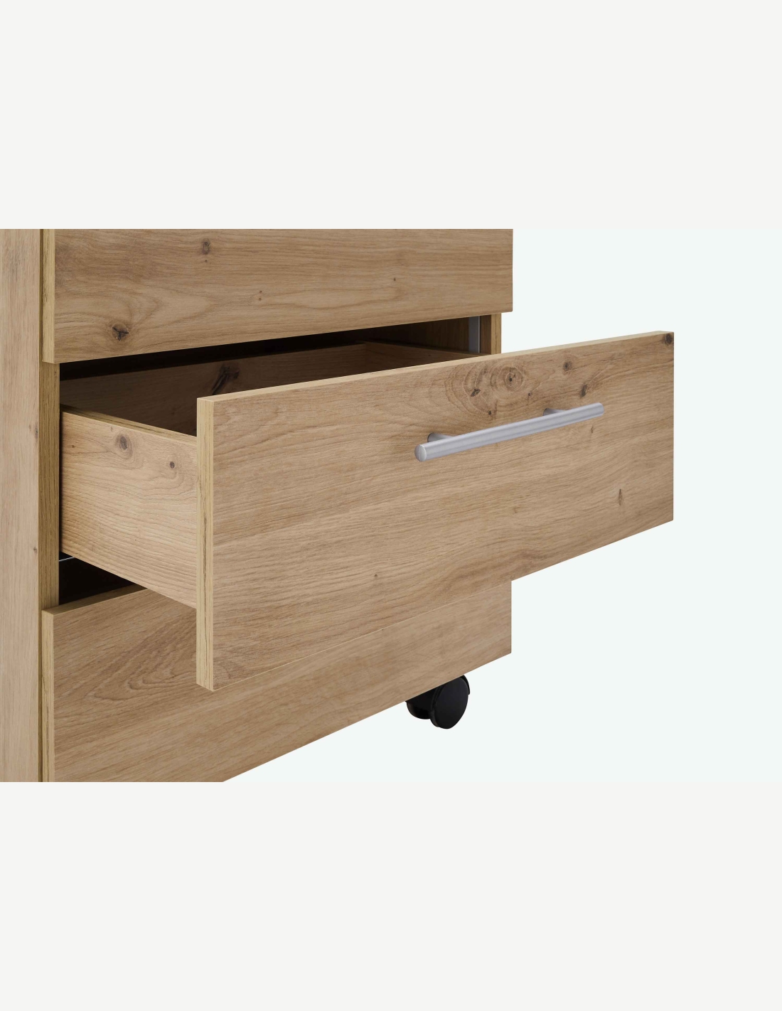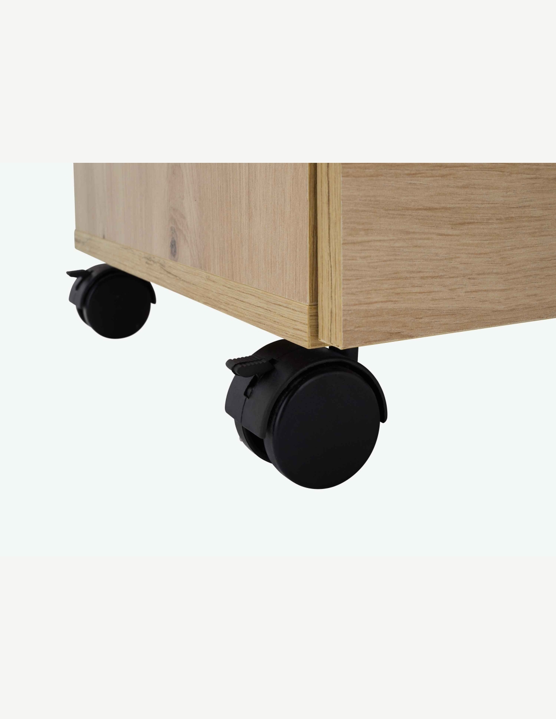 Questa cassettiera a rotelle con 3 cassetti in legno è ideale per l'ufficio o lo studio. Offre molto spazio per riporre vari oggetti da ufficio. Con questa cassettiera a rotelle, lo spazio di lavoro può essere arredato con un design nuovo e moderno che porta funzionalità nella vita di tutti i giorni. Questi mobili per ufficio moderni sono ideali anche per anticamere, sale riunioni e aree d'ingresso per incontrare i clienti con stile e classe.