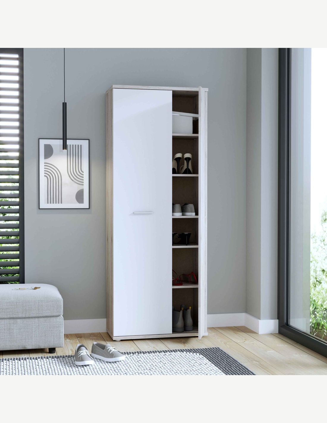 Armadio multiuso in legno laminato con 2 porte a battente e 5 ripiani, disponibile in diversi colorazioni. Dimensioni LAP 68,9x179,1x34,8cm