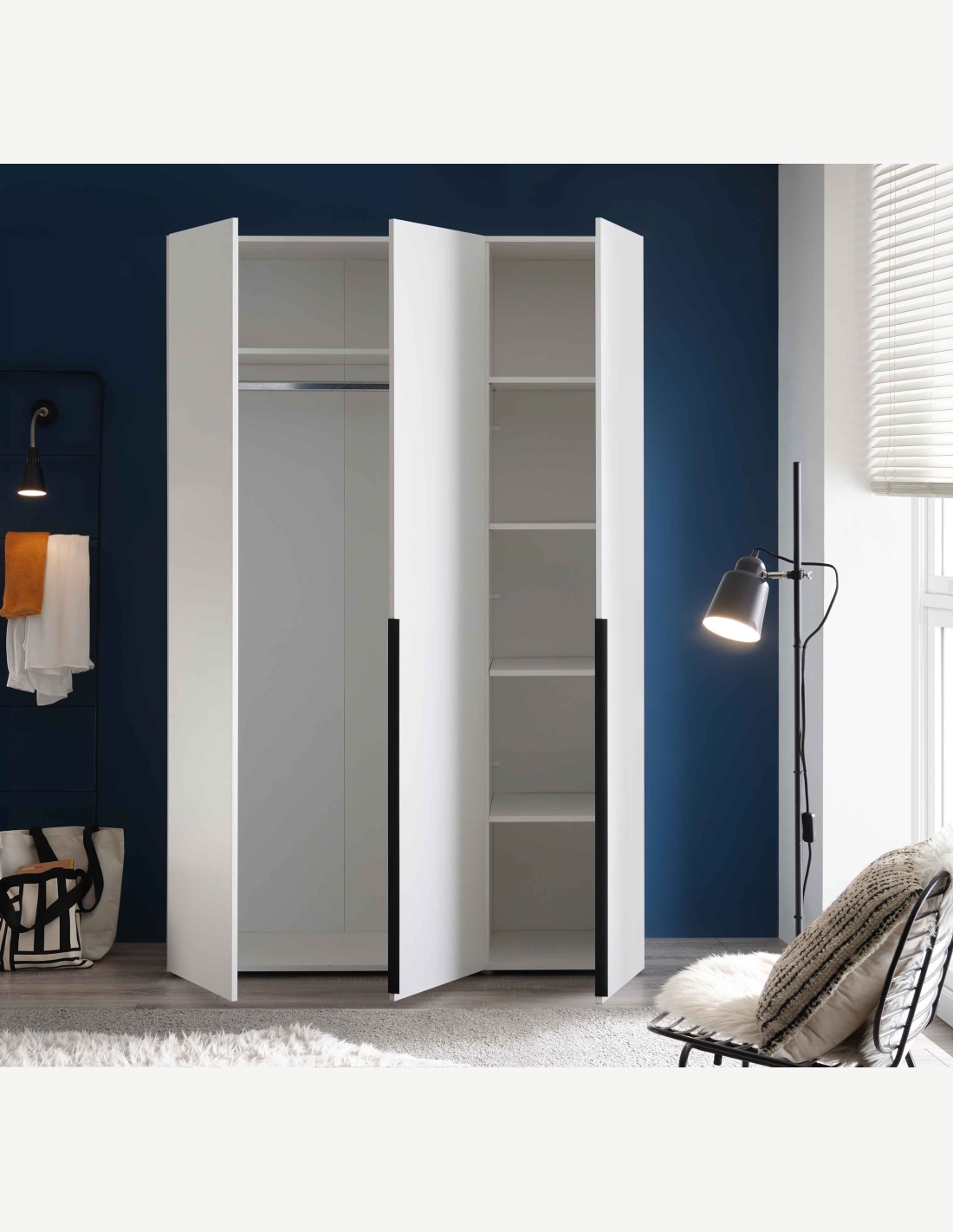 Questo armadio bianco opaco porta un stile molto elegante nella tua camera da letto. Grazie alle 3 ante ti offre molto spazio per i tuoi abiti e tante altre cose. Questo armadio è molto moderno ed elegante ed è ideale per la tua camera da letto. Disponibile anche con 4 o 5 ante.