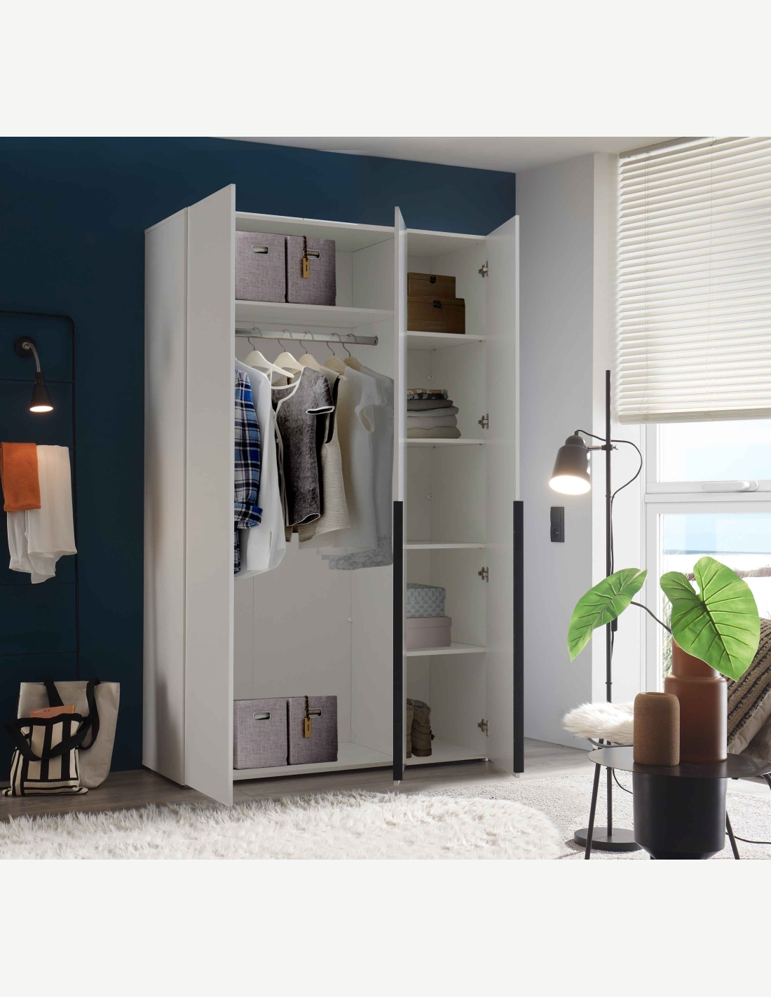 Armadio bianco con 4 ante a battente in legno laminato di...