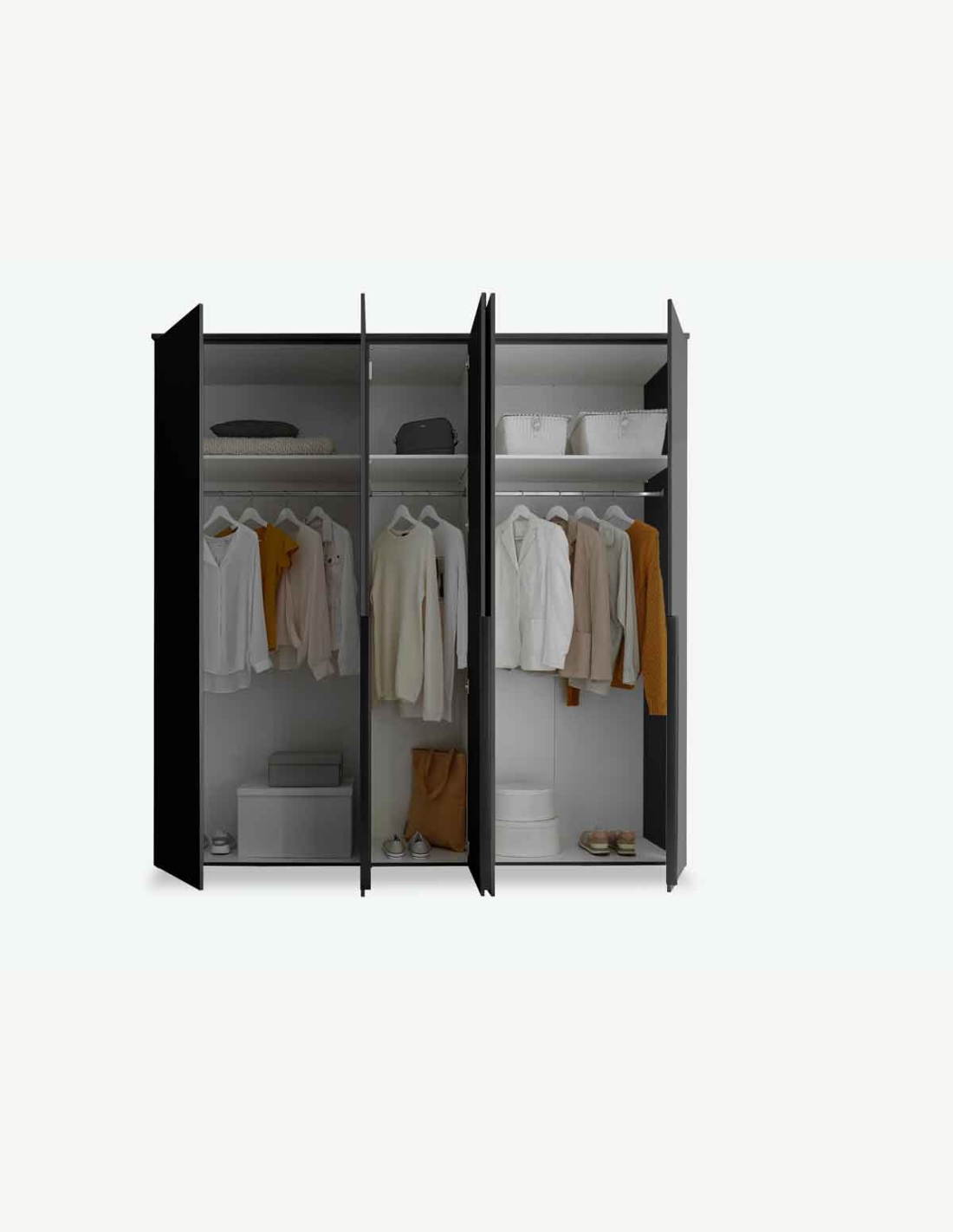 Grazie alle sue 5 ante, 3 bastoni appendiabiti e 3 ripiani, offre tantissimo spazio per i tuoi vestiti e accessori. L'organizzazione non è mai stata così facile!