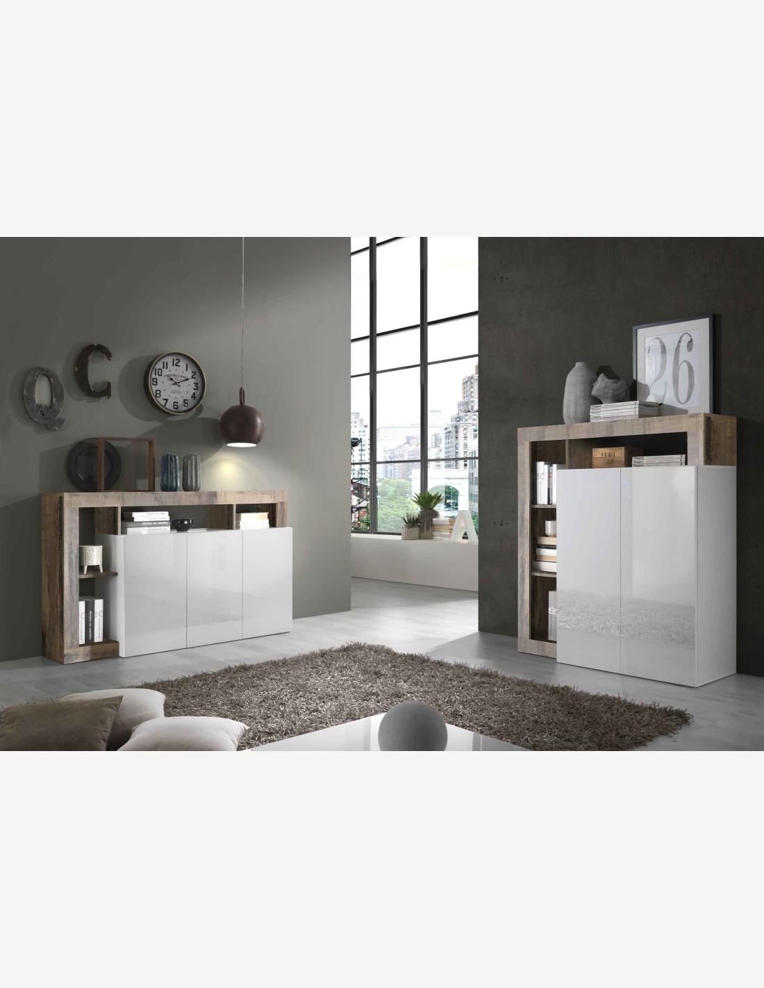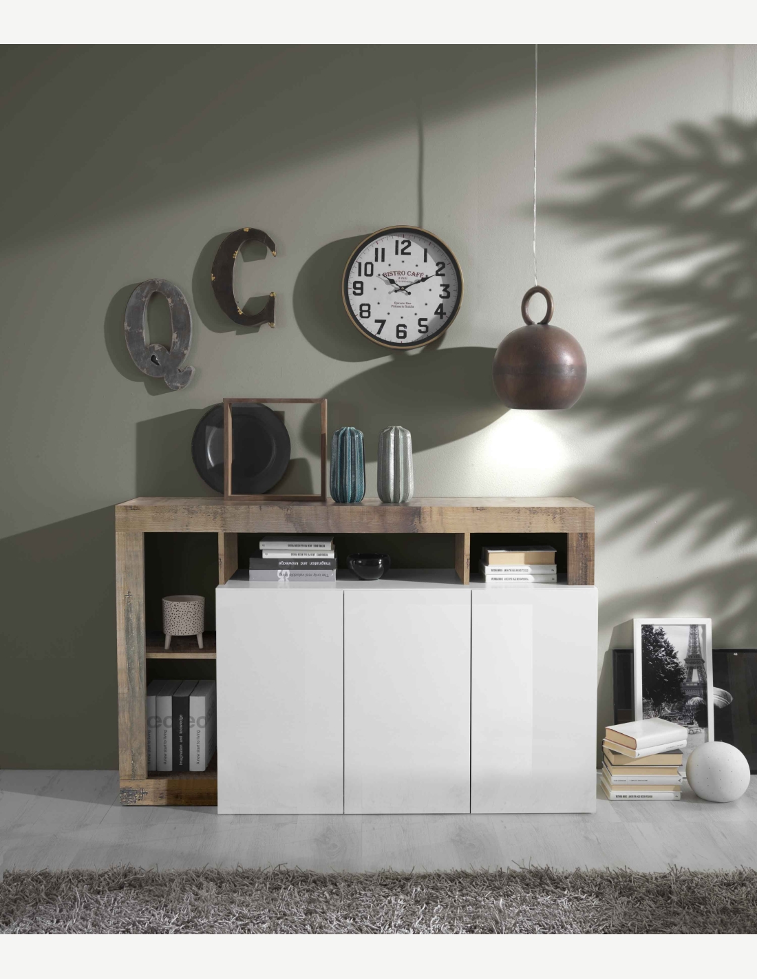 Comò in legno laminato nel colore bianco lucido / decoro...