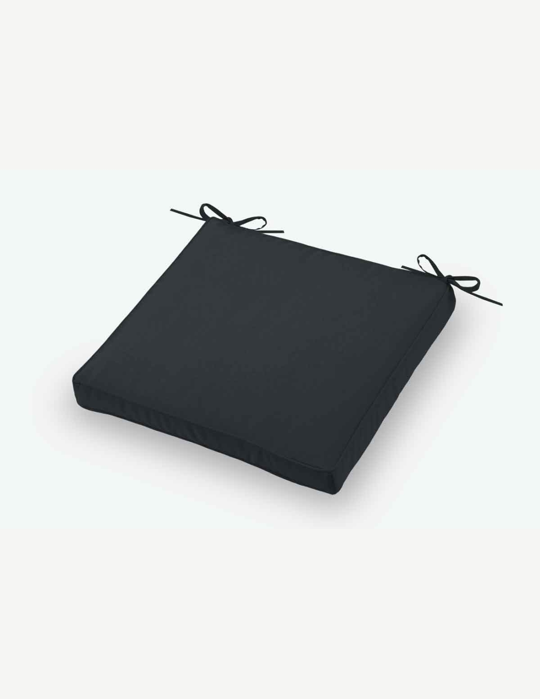 Cuscino di seduta idrorepellente per sedie da esterno, in 100% poliestere con laccetti di fissaggio, disponibile in diversi colori. Dimensioni: LAP 40x5x40 cm
