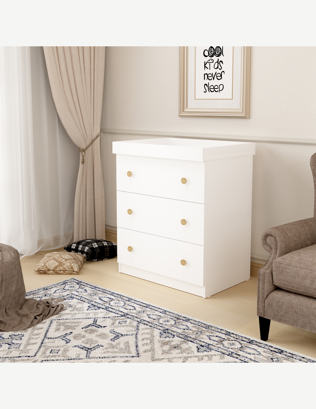Armadio a 3 ante battenti e 2 cassetti, in legno...