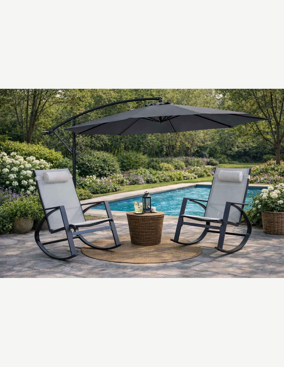 Ombrellone a braccio con struttura in metallo e tessuto,...