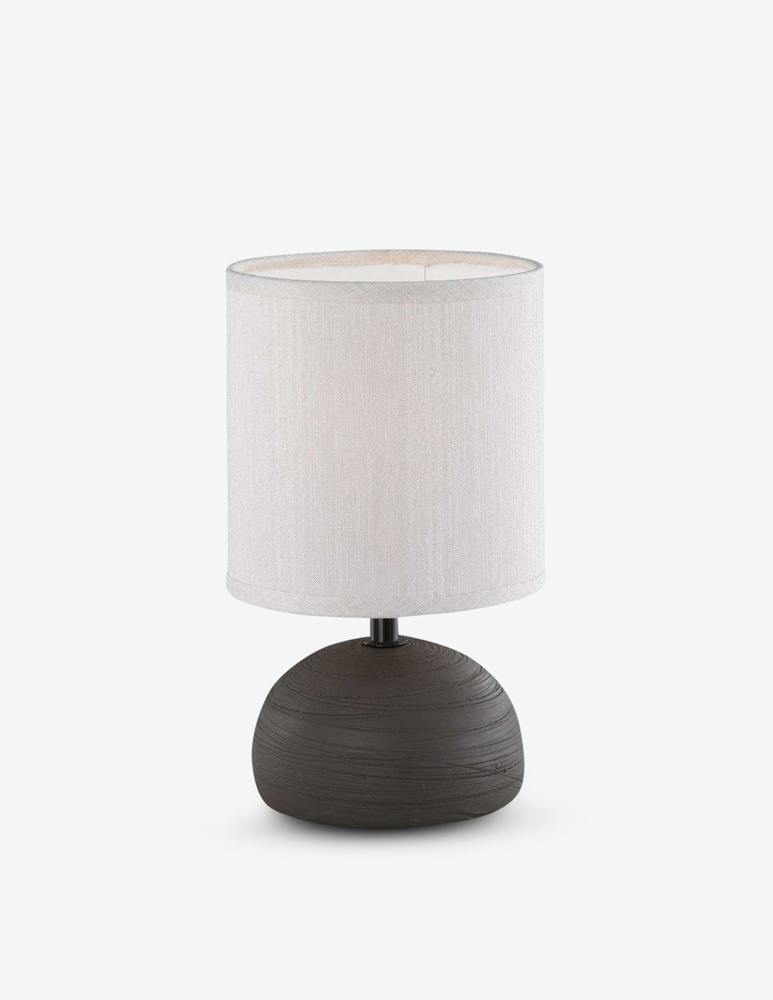 Lampada da tavolo con paralume in stoffa bianca e base in ceramica, disponibile in 2 colorazioni diverse. La lampadina non é compresa e deve essere acquistata a parte, ideale per questa lampada é 1xE14 max. 40 Watt. L'altezza é di ca. 23 cm con un diametro di ca. 14 cm. La lampada viene accesa e spenta da un interruttore via cavo. Ideale per il soggiorno o per il proprio comodino nella stanza da letto.
