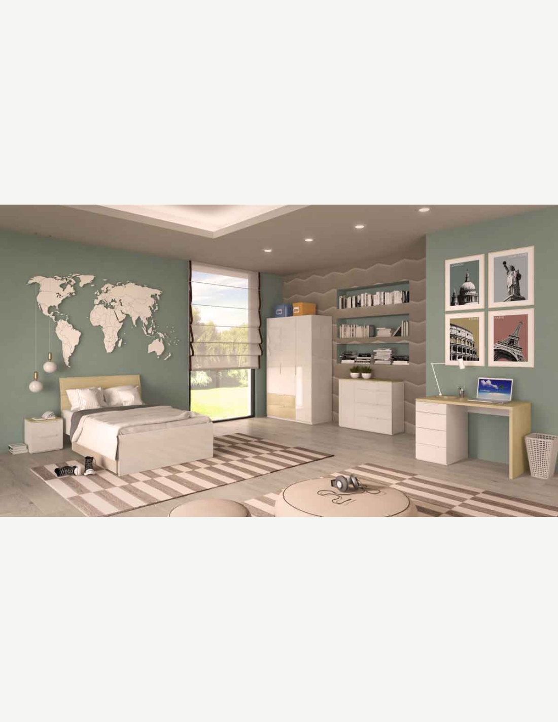 Offriamo oltre al letto anche il cassettone sotto letto, comodino, comò, armadio e scrivania.