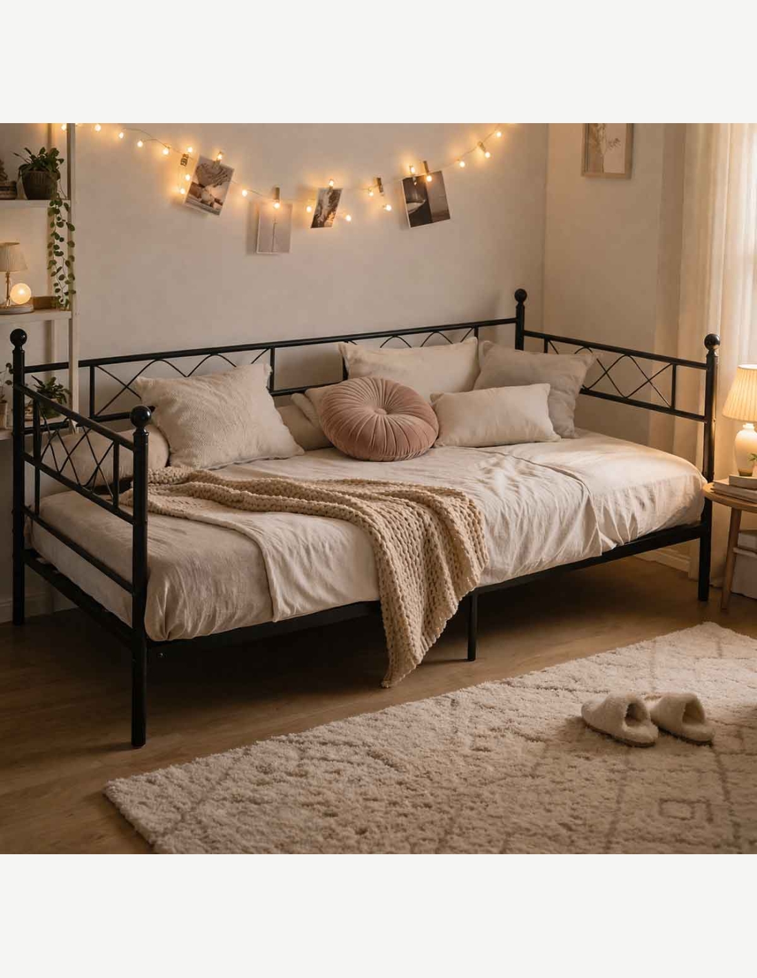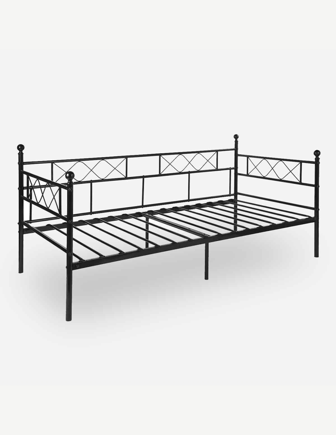 Fusto letto in metallo nero. Dimensioni: LAP ca. 198x95,5x94 cm.