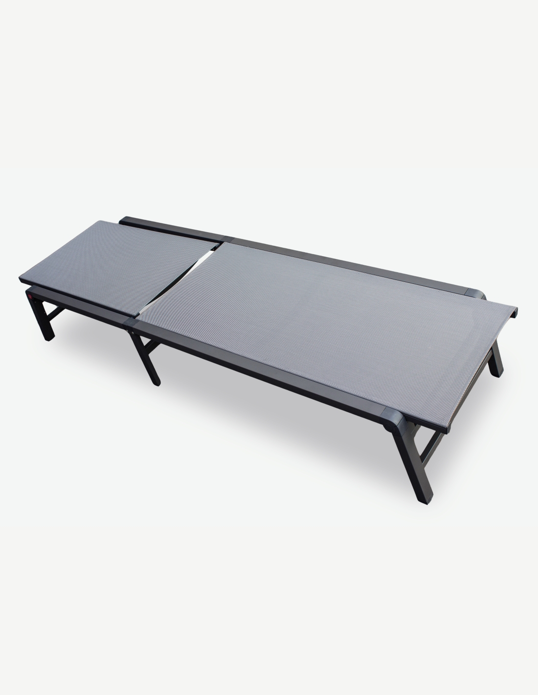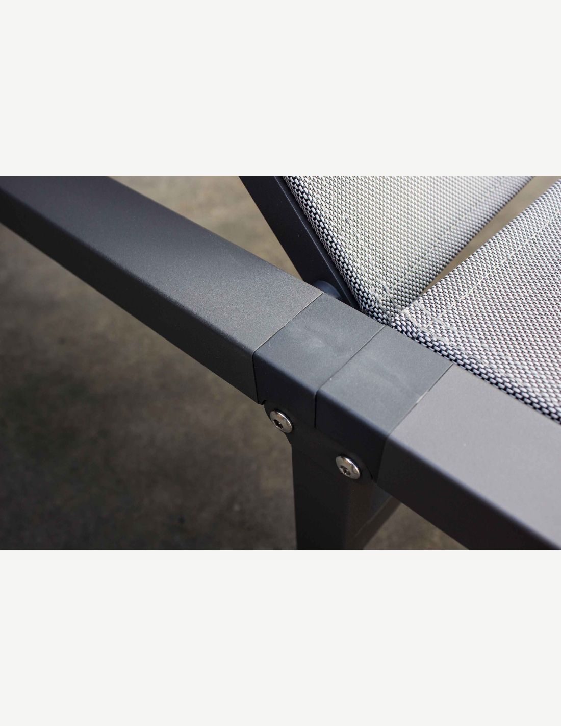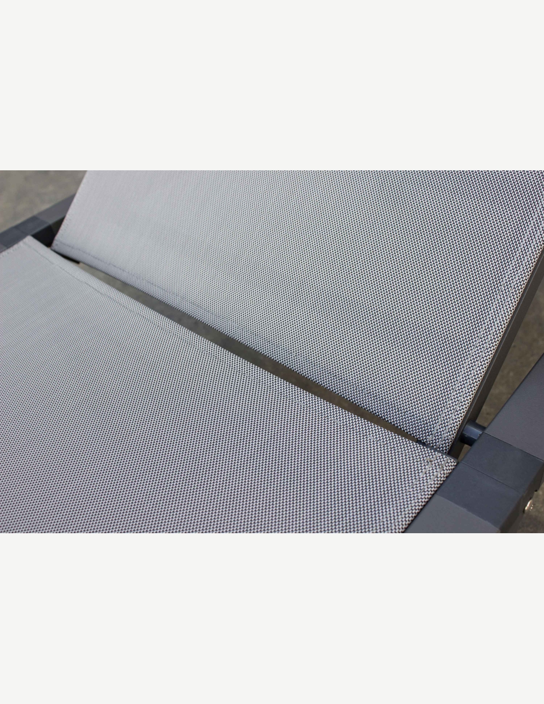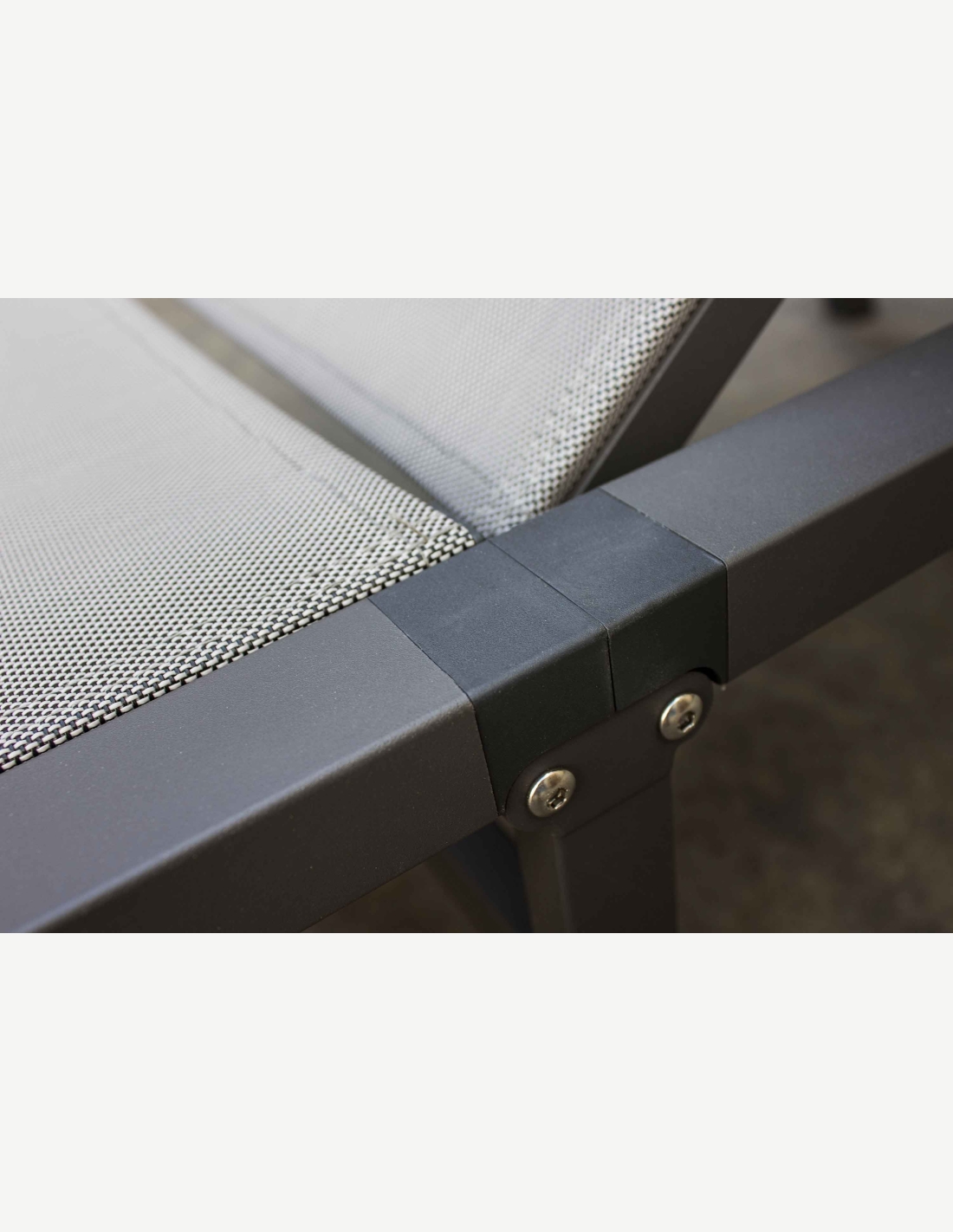 Grazie alla sua combinazione di funzionalità, praticità e stile moderno, questo lettino prendisole è la soluzione ideale per godersi momenti di relax all'aria aperta senza rinunciare a a comfort ed eleganza. Questo lettino è la scelta peretta per chiunque desideri relax e comfort in giardino, in terrazza o a bordo piscina. Il lettino è dotato di una robusta struttura in alluminio che garantisce resistenza e leggerezza, mentre la seduta e lo schienale sono realizzati in textilene, un materiale innovativo, idrorepellente e traspirante che offre comfort e durata.