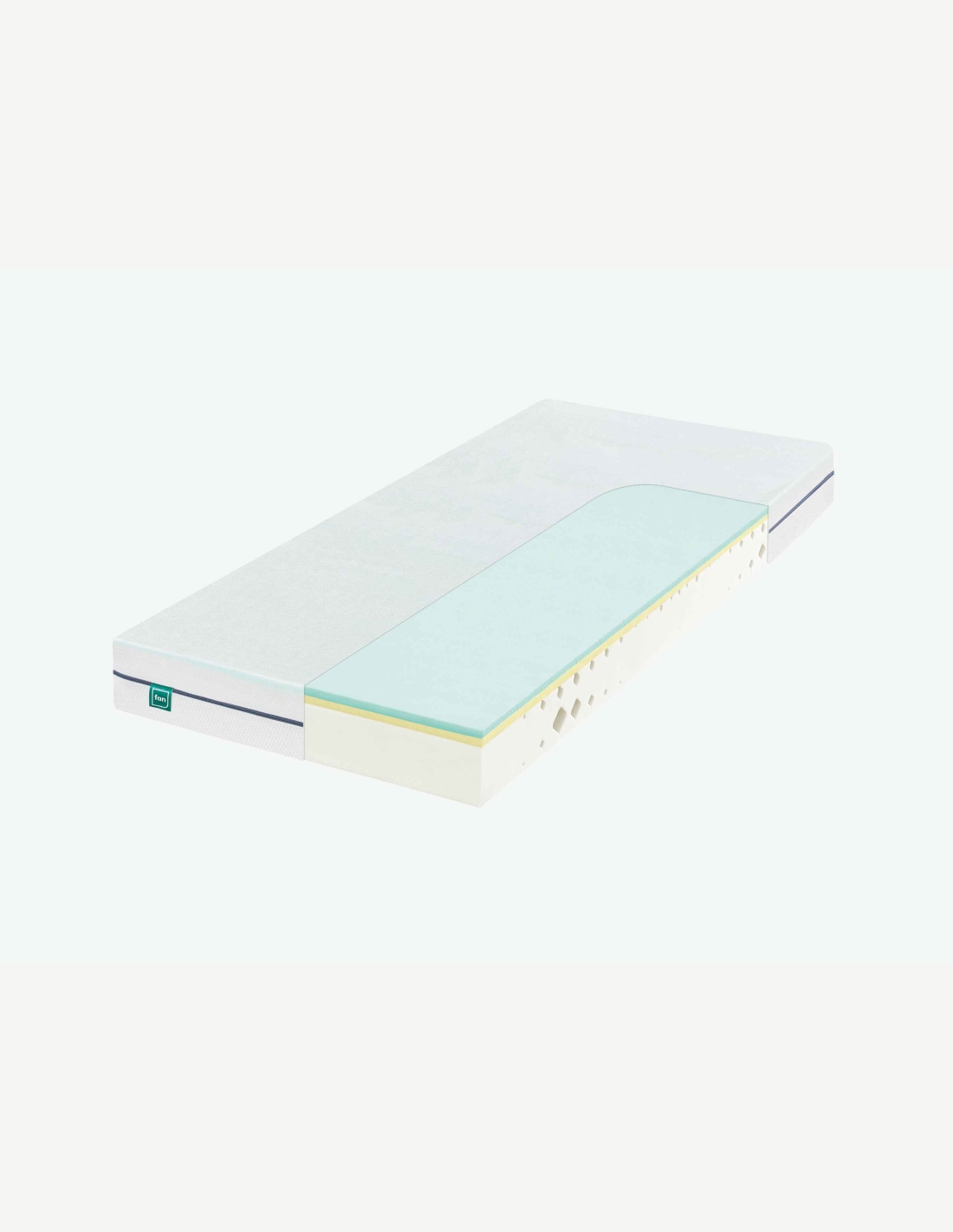 I materassi in poliuretano espanso sono elastici in punti specifici, ossia cedono dove il corpo esercita una pressione. La perfetta ripartizione della pressione del corpo sulla superficie garantisce una posizione corretta. Per sfruttare al meglio tutta la superficie del materasso, è consigliabile girare il materasso due volte al mese, anche in lunghezza. Ottima circolazione dell'aria ed eccellente elasticità. I diversi strati di schiuma e l'anima in schiuma comfort multizona offrono un ottimo sostegno in posizione laterale, supina o prona. Adatto a tutti i tipi di corporatura. Elevato comfort igienico grazie al rivestimento in doppio jersey lavabile fino a 60°C.
