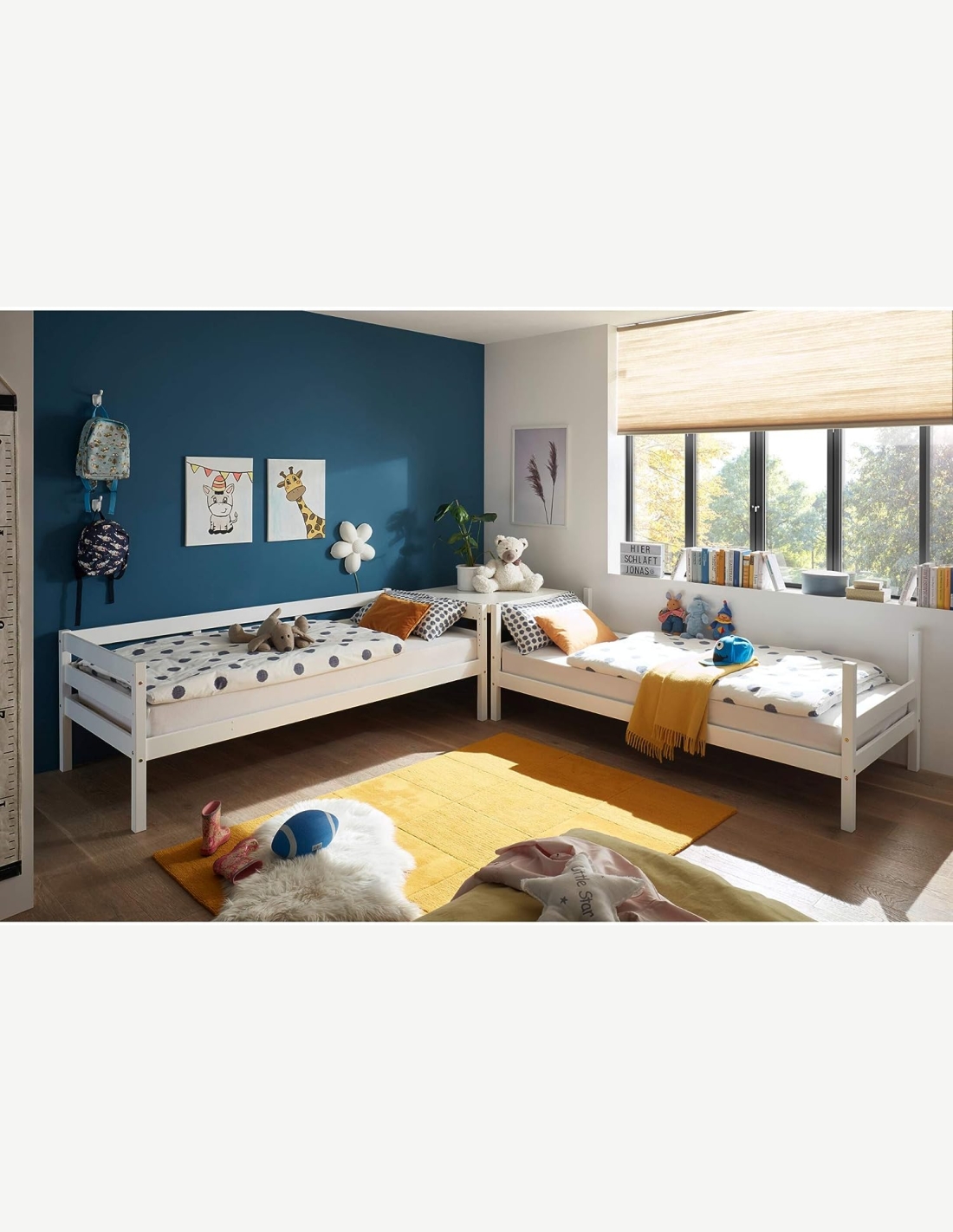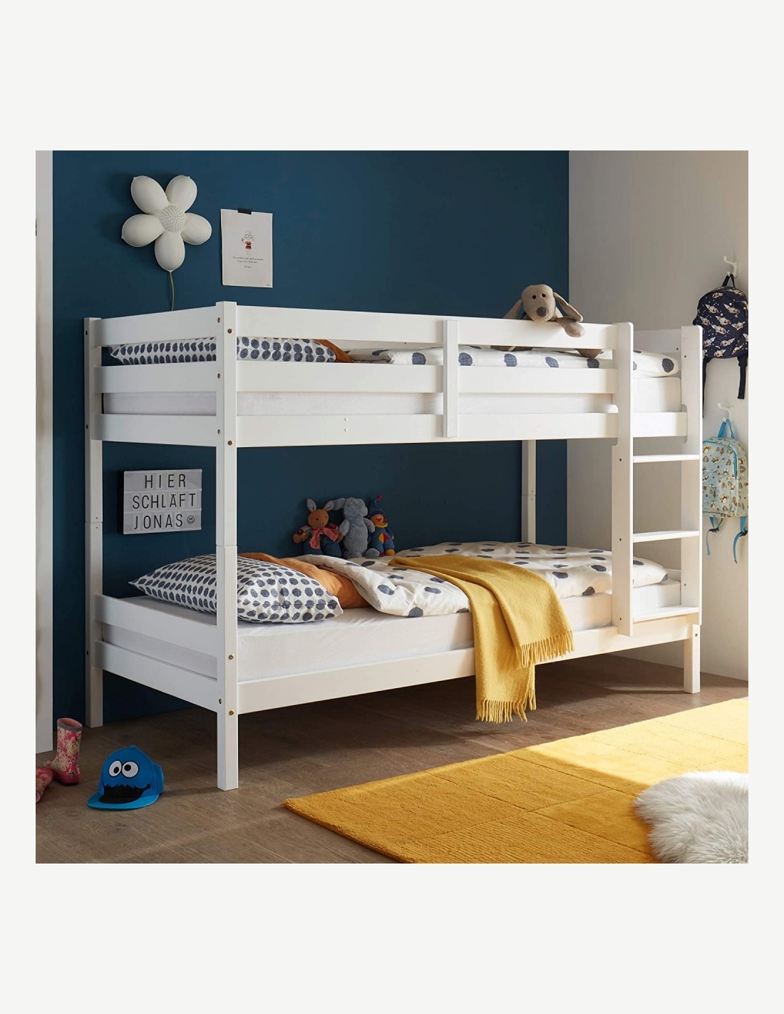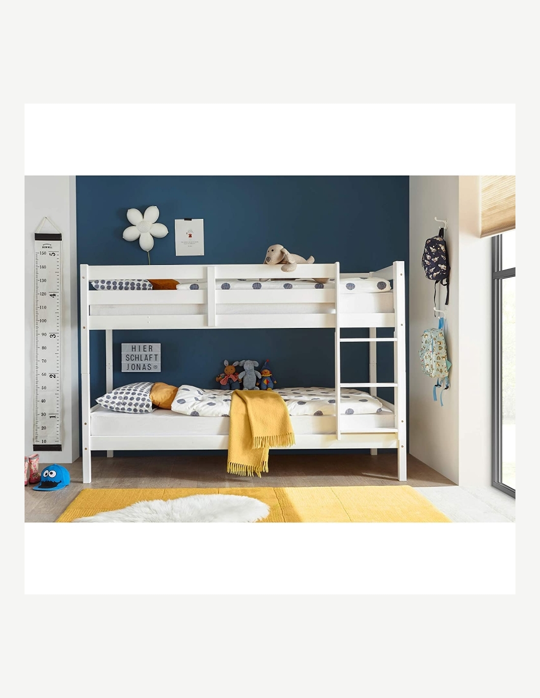 Questo letto a castello è un sogno per ogni bambino, realizzato in legno massicio di pino di alta qualità. Il letto di sopra é raggiungibile facilmente tramite una scaletta sul lato destro del letto realizzata da 3 gradini. Particolaritá di questo letto a castello é che in legno massicio di pino, così è molto stabile robusto. Offriamo anche i rollo e materasi combinabili con il letto Anke.