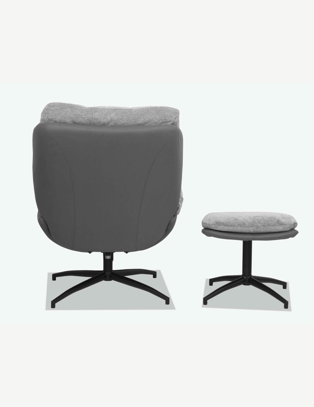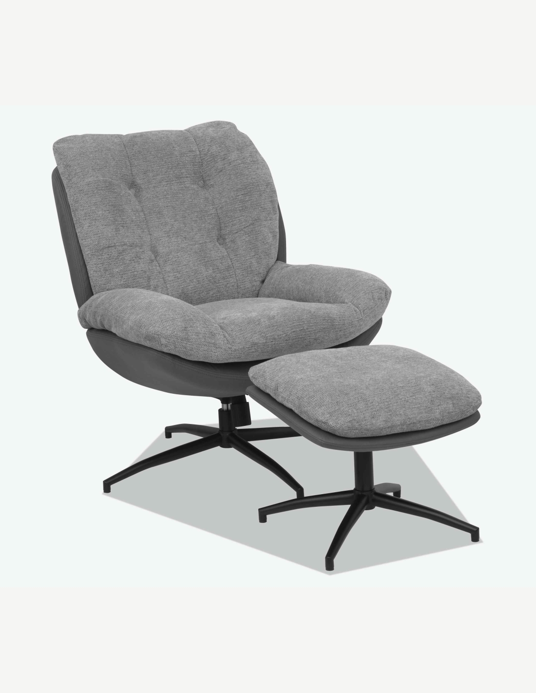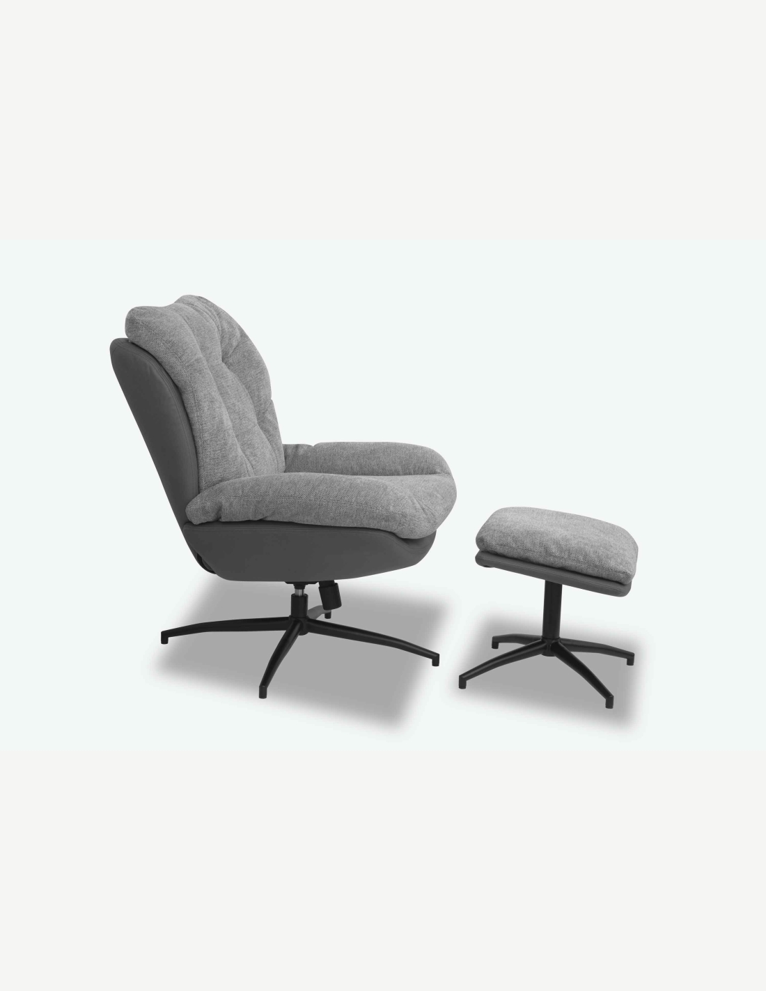Poltrona TV con sgabello, girevole con telaio in metallo, disponibile in 2 colorazioni. Misure poltrona LAP 79x98x91 cm e sgabello LAP 50x41/45x44 cm