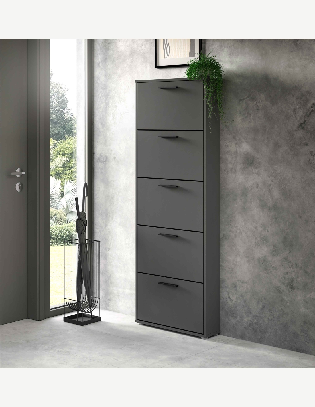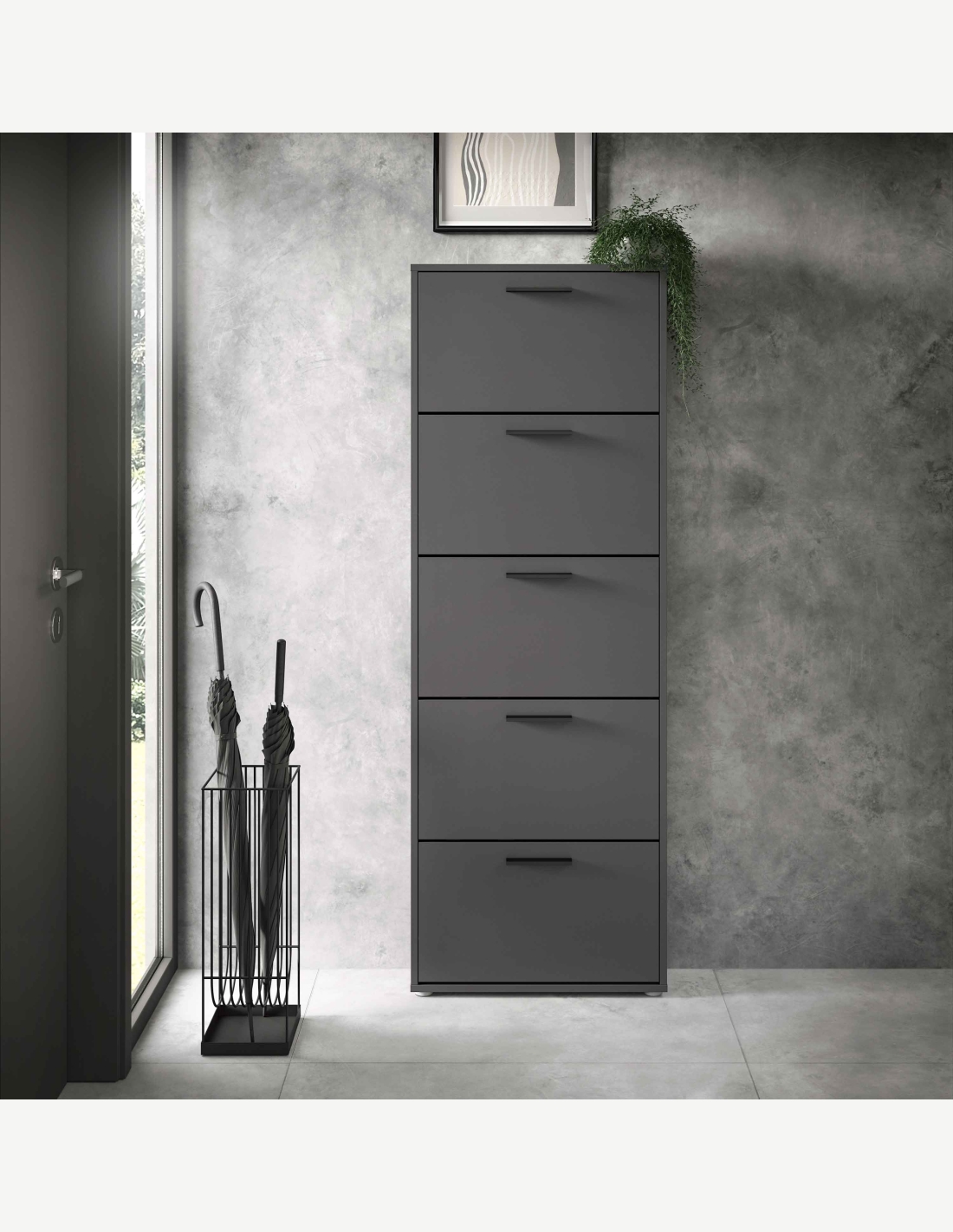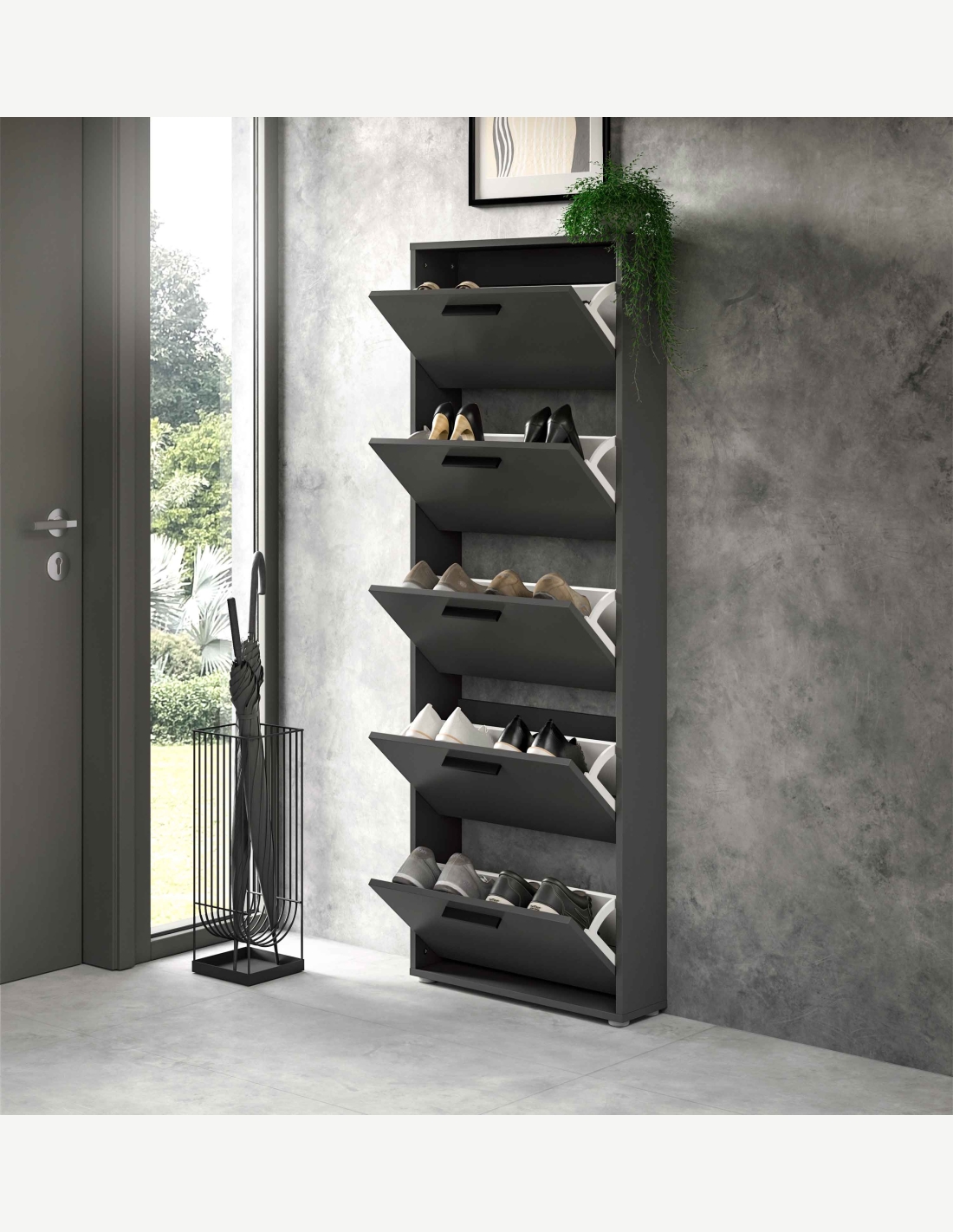 Questa scarpiera elegante è composta da 5 vani a ribalta e offre quindi spazio sufficiente per le tue scarpe. Grazie alle sue dimensioni, questo mobile è ideale per l'ingresso. È dotato di un robusto sistema pieghevole molto facile da aprire. Si consiglia di posizionare il mobile contro la parete e di fissarlo al muro, se necessario. Disponibile in 3 diversi colori e 4 diverse dimensioni.