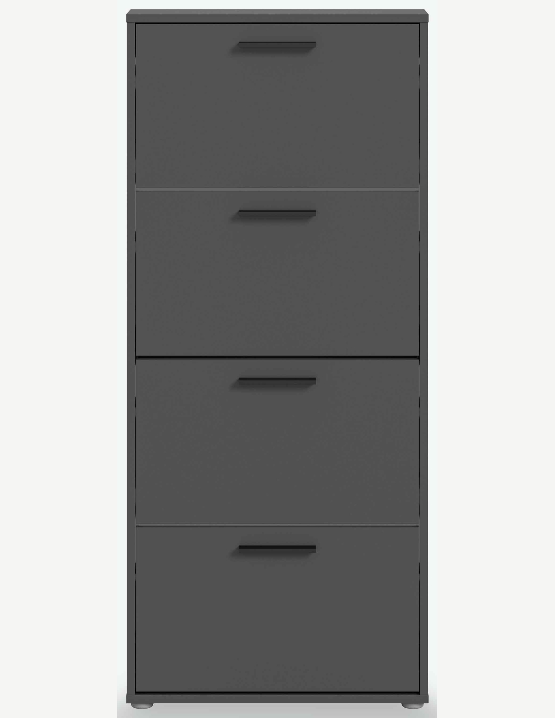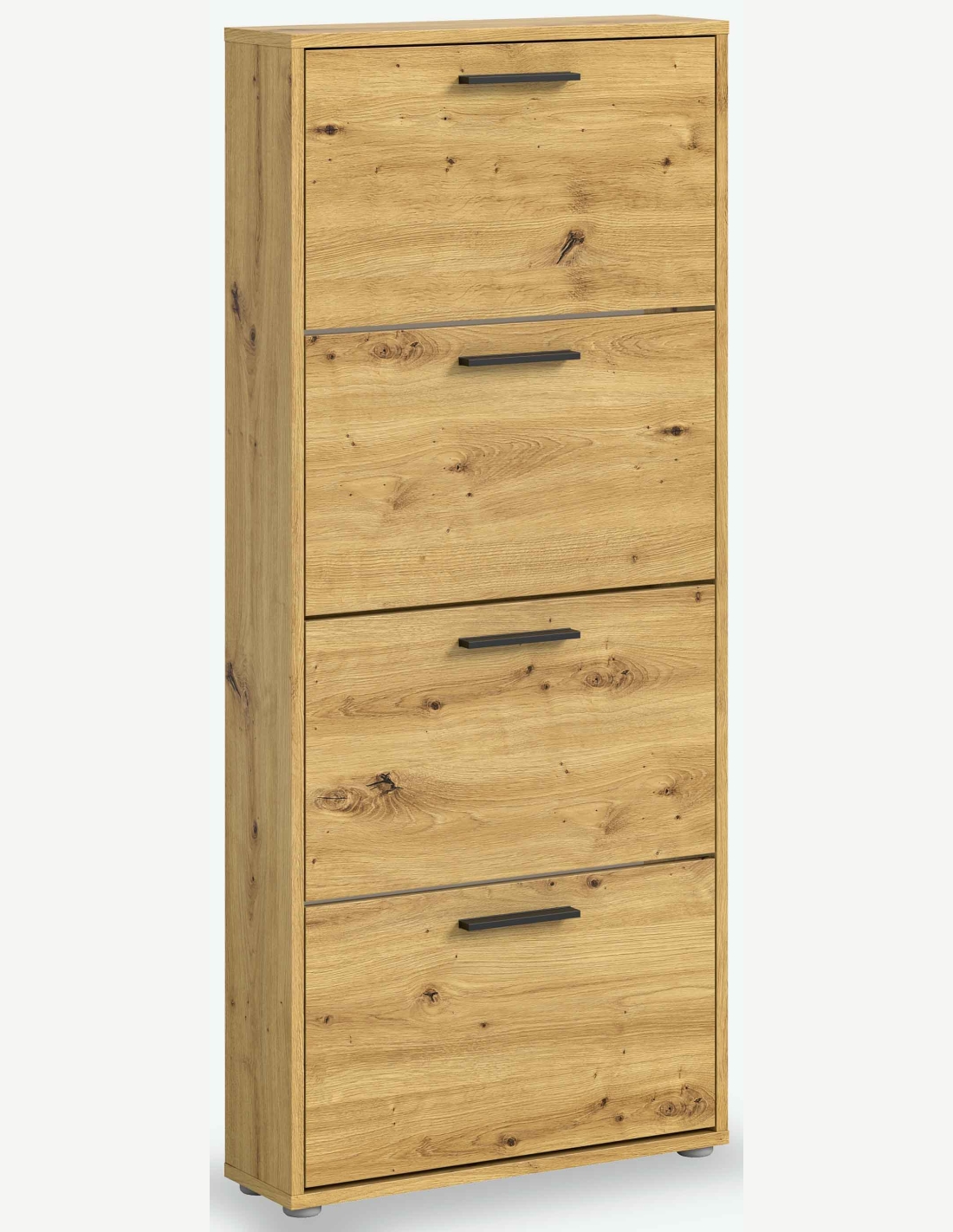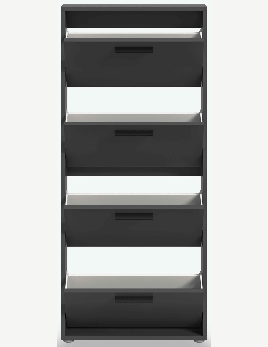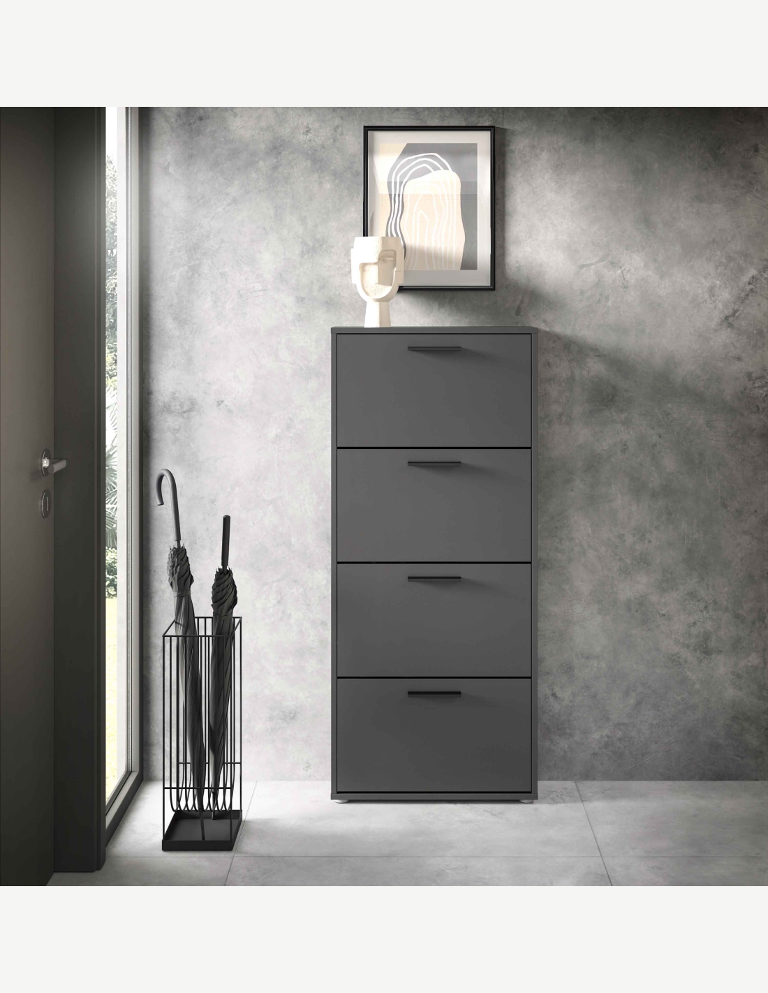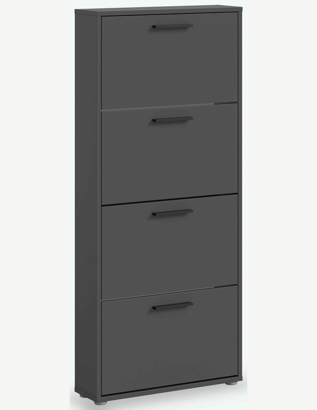 Scarpiera in legno laminato con 4 vani a ribalta. Disponibile in 3 colorazioni diversi. Dimensioni LAP ca. 59x136x17 cm