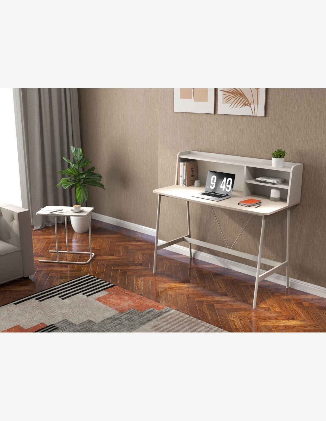 Soluzione perfetta per la tua postazione da lavoro. Questa scrivania invita a lavorare. Soddisfa anche di 2 ripiani aperti, che ti offre tanto spazio per le tue cose. Una scrivania moderna, elegante ed è ideale per ogni ufficio o per una camera da ragazzi. Si lascia facilmente abbinare con altri mobili giá presenti in casa. inoltre, questa scrivania puó essere utilizzata anche come toeletta da trucco.