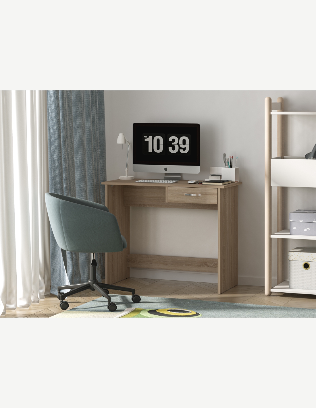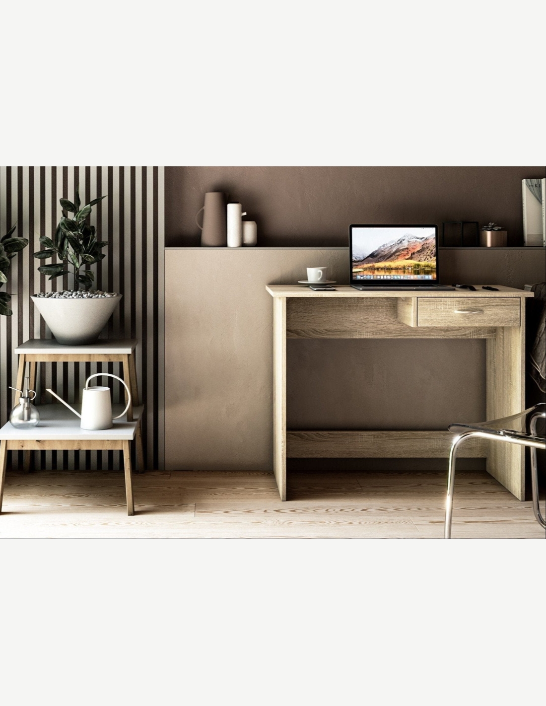 Scrivania con 1 cassetto in legno laminato nel colore bianco oppure quercia sonoma. Utilizzabile anche come toelette da trucco. Dimensioni LAP ca. 90x72x40 cm