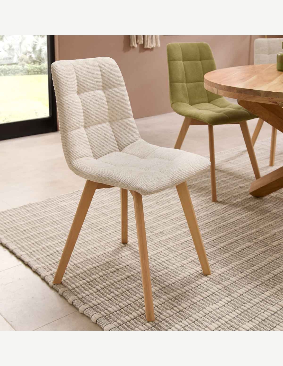Sedia da pranzo in tessuto con struttura, con 4 gambe in legno massiccio di faggio. Disponibile in diversi colori. Dimensioni: LAP ca. 55x89x46 cm