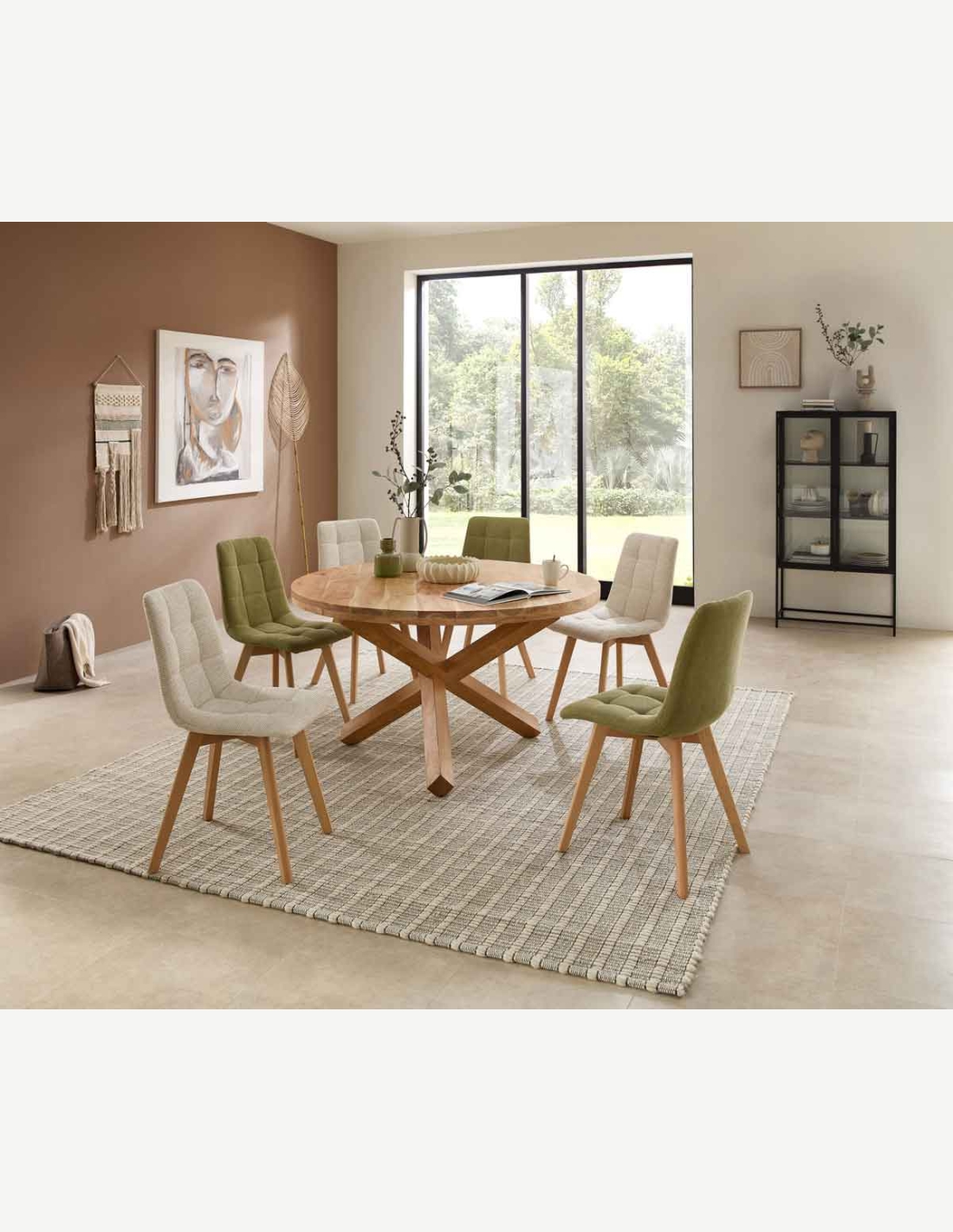 Questa sedia da pranzo moderna attira l'attenzione in qualsiasi zona della casa, sia in cucina che in sala da pranzo. L'ottimo colore abbinato alla struttura in legno massiccio conferisce alla sala da pranzo un aspetto moderno ed elegante. Sedersi a tavola è importante, ma è ancora più importante sentirsi a proprio agio mentre si mangia. Questa sedia vi invita a sedervi comodamente insieme. Disponibile in diversi colori per avere sempre una combinazione perfetta con la cucina o la sala da pranzo.