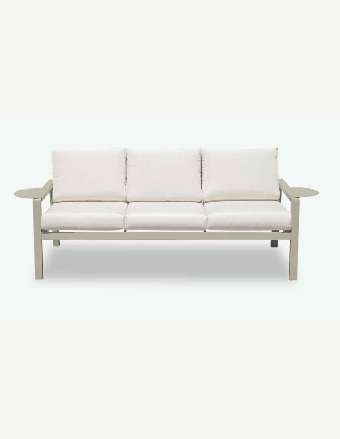 Set di mobili da giardino in metallo beige e cuscini in poliestere di colore beige, composto da 1 panca da 3 posti, 2 poltrone e 1 tavolino. Misure: panca LAP 173x71x74 cm, tavolino LAP 115x34x68 cm e poltrone LAP 64x71x74 cm.