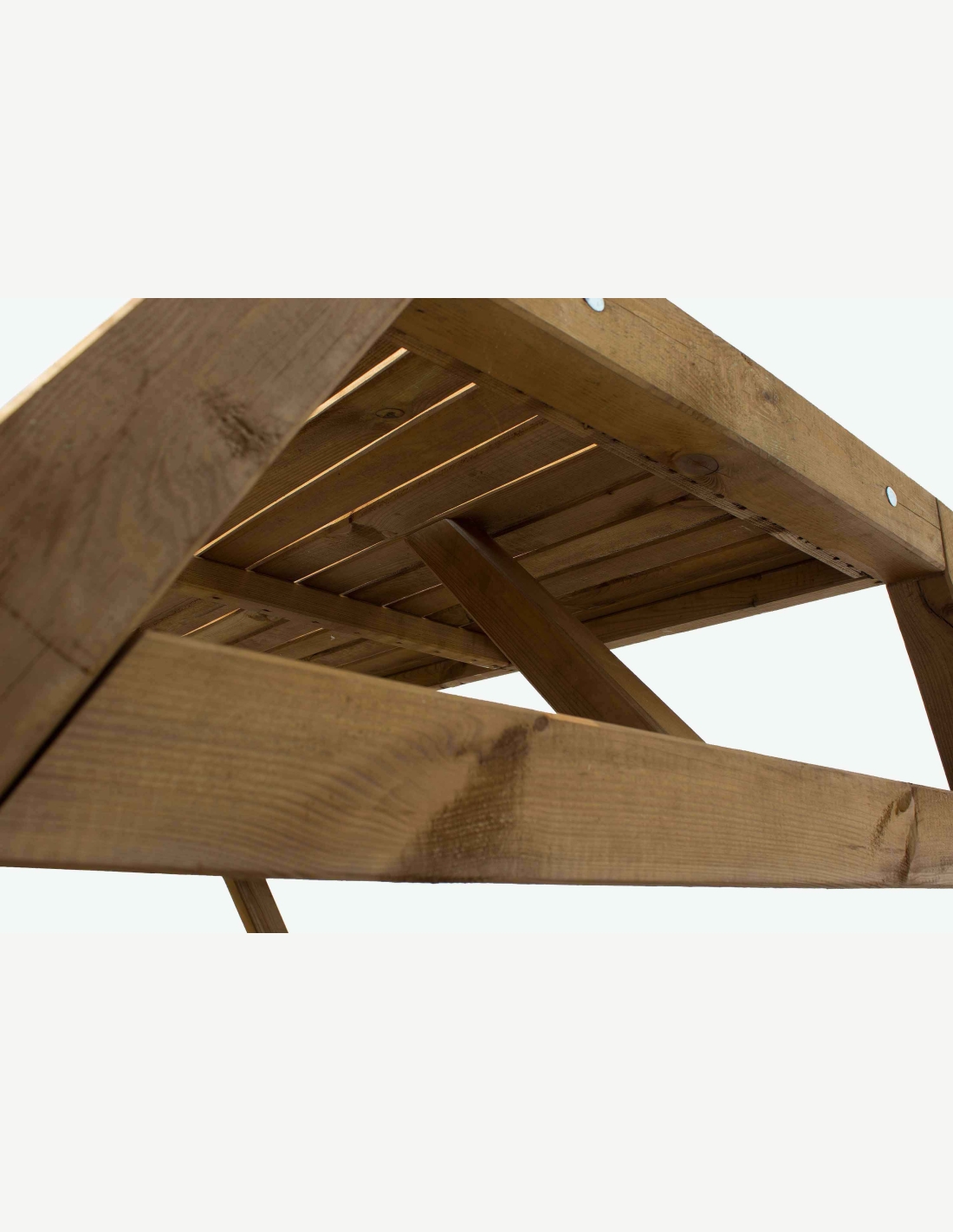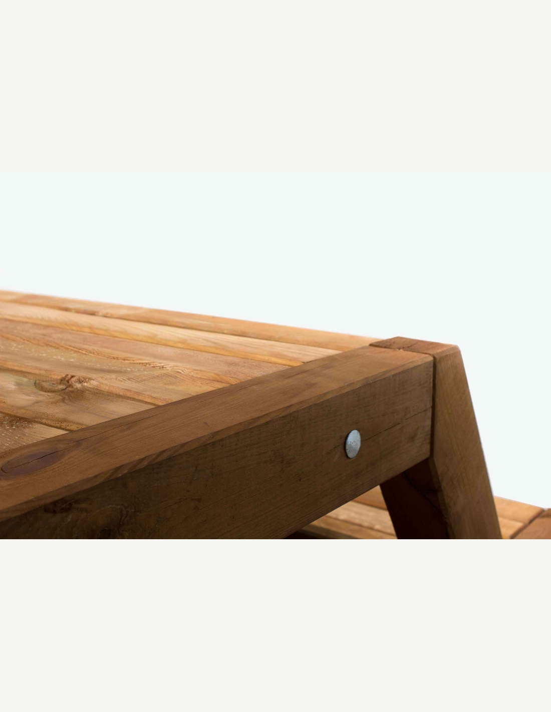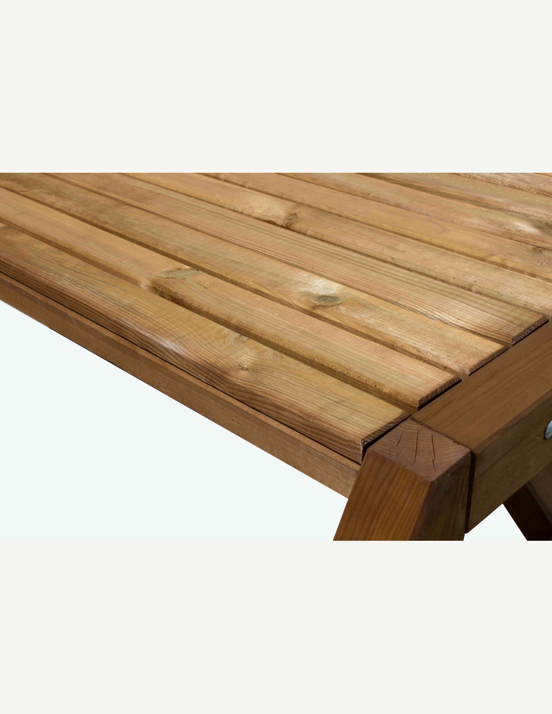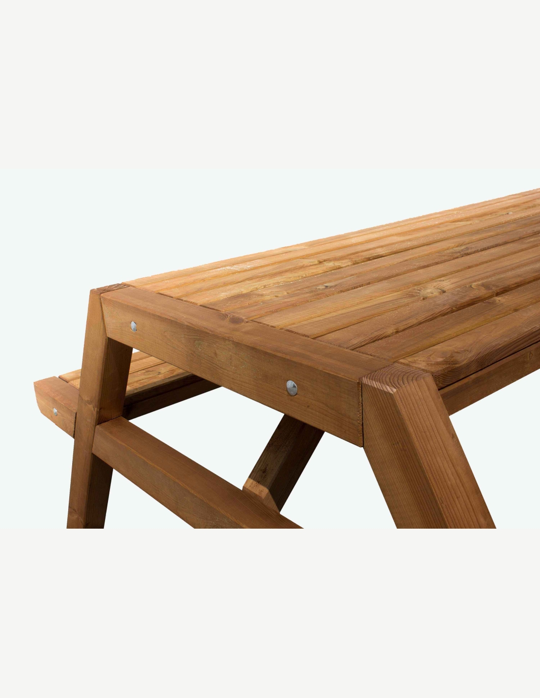 Tavolo da picnic in legno massello resistente alle intemperie, ideale per il giardino. Composto da un tavolo e due panche, il tutto integrato in un unico elemento. Questo tavolo da picnic è ideale per trascorrere giornate calde in giardino. Può essere posizionato permanentemente all'aperto, adatto per uso domestico privato. Il colore del prodotto potrebbe leggermente variare a seconda della luminositá dello schermo dal quale viene visualizzato. Piccole crepe, cambiamento di colore / sbiadimento e qualche deformazione sono caratteristiche naturali del legno.