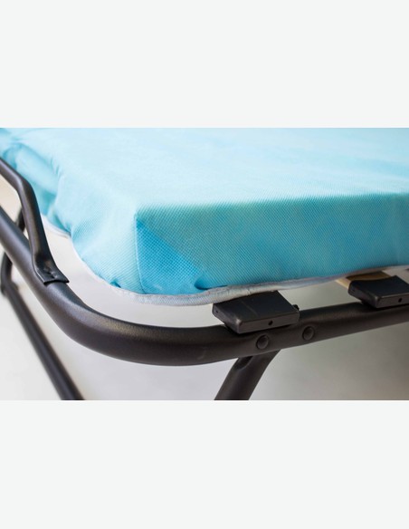 Questo letto pieghevole vi offre la possibilità di creare una piacevole possibilità di dormire per un ospite in modo semplice e veloce. È comodo e molto veloce da montare. Ha 2 forti supporti davanti e dietro che si ripiegano per stabilizzarlo. Il letto ha un peso leggero e può essere spostato rapidamente su 4 rotelle. Quando non è in uso, può anche essere ripiegato rapidamente e riposto per risparmiare spazio. Questo letto per gli ospiti è ideale per qualsiasi casa. Tuttavia, può anche fornire una buona notte di sonno quando si campeggia e inoltre protegge un pò dagli insetti non poggiando sul terreno.