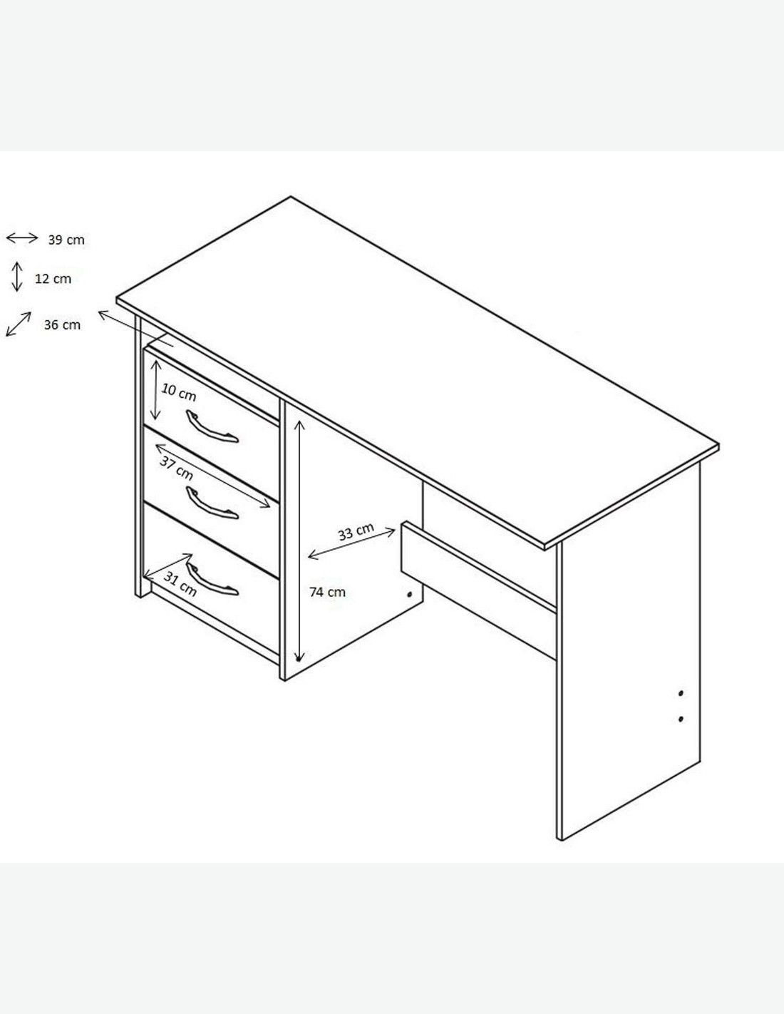 Questa scrivania é composta da 3 cassetti ed 1 vano aperto. Ti offre molto spazio per tutti i tuoi utensili da ufficio come raccoglitori, libri, cancelleria e molto altro ancora! Una scrivania moderna ed elegante, ideale anche in una stanza per ragazzi. Offriamo questa scrivania in 3 diverse colorazioni.